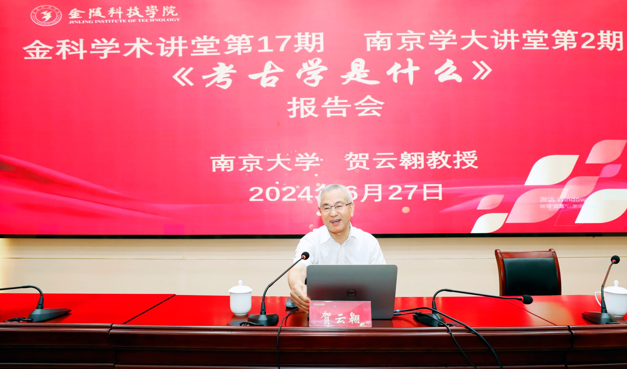 6月27日上午,,,,,,,我校约请南京大学文化与自然遗产研究所所长贺云翱教授作题为《考古学是什么》的学术讲座,,,,,,,科技处、人文学院、修建工程学院相关认真人和师生代体现场聆听。。。。。。讲座由副校长王延光主持。。。。。。
