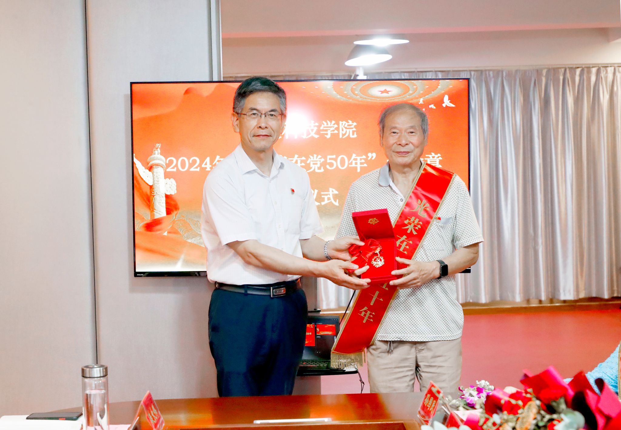 7月1日下昼,,,,,,我校在白下校区离退休事情处一楼聚会室举行2024年“庆幸在党50年”纪念章揭晓仪式。。。。。校党委书记刘志远,,,,,,党委常委、副校长高永祥,,,,,,党委常委、党委组织部部长张远凤,,,,,,获颁纪念章老党员出席,,,,,,离退休党支部书记及有关职员,,,,,,离退休事情处全体职员加入。。。。。仪式由高永祥主持。。。。。