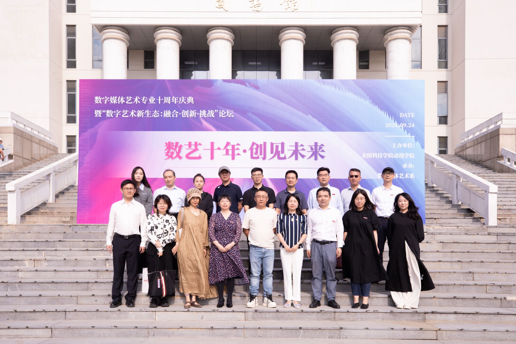 9月24日,,,,,,,,动漫学院在图书馆第一报告厅举行数字媒体艺术专业建设十周年暨“数字艺术新生态:融合·立异·挑战”学术论坛。。。。。。。。教育部动画与数字媒体艺术专业教指委委员周越教授,,,,,,,,南京信息工程大学、南京邮电大学、江南大学、南京艺术学院数字艺术专业认真人,,,,,,,,江苏地区数字内容制作头部企业认真人,,,,,,,,我校副校长张燕出席运动。。。。。。。。动漫学院党政认真人、数字媒体艺术专业西席及学生代表加入运动。。。。。。。。