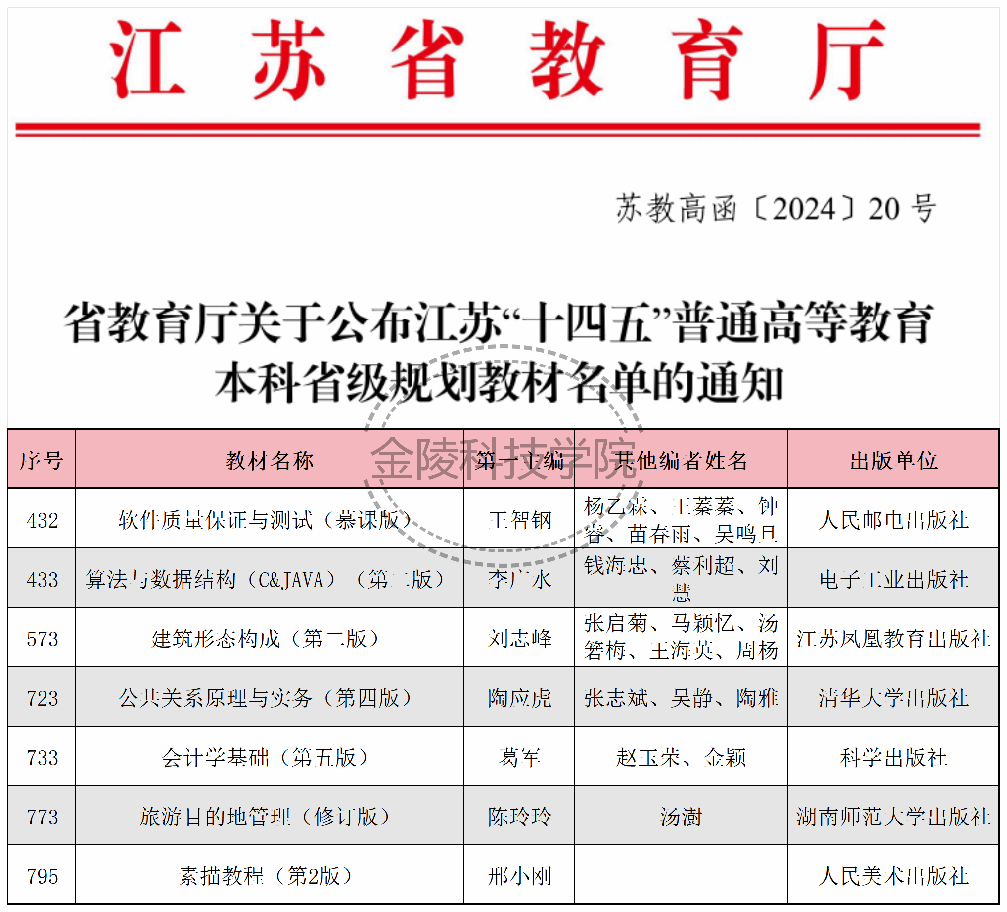 ¿ËÈÕ£¬£¬£¬£¬£¬½ËÕÊ¡½ÌÓýÌüÐû²¼¡¶Ê¡½ÌÓýÌü¹ØÓÚÐû²¼½ËÕ¡°Ê®ËÄÎ塱ͨË׸ߵȽÌÓý±¾¿ÆÊ¡¼¶ÍýÏë¿Î±¾Ãûµ¥µÄ֪ͨ¡·£¨Ëս̸ߺ¯¡²2024¡³20ºÅ£©£¬£¬£¬£¬£¬ÎÒУ¡¶Èí¼þÖÊÁ¿°ü¹ÜÓë²âÊÔ£¨Ä½¿Î°æ£©¡·¡¶Ëã·¨ÓëÊý¾Ý½á¹¹£¨C&JAVA£©£¨µÚ¶þ°æ£©¡·¡¶ÐÞ½¨ÐÎ̬×é³É£¨µÚ¶þ°æ£©¡·¡¶¹«¹²¹ØÏµÔÀíÓëʵÎñ£¨µÚËİ棩¡·¡¶»á¼ÆÑ§»ù´¡£¡£¡£¡£¡£¨µÚÎå°æ£©¡·¡¶ÂÃÓÎÄ¿µÄµØÖÎÀí£¨ÐÞ¶©°æ£©¡·¡¶ËØÃè½Ì³Ì£¨µÚ2°æ£©¡·µÈ7²¿¿Î±¾»ñÅúΪ½ËÕ¡°Ê®ËÄÎ塱ͨË׸ߵȽÌÓý±¾¿ÆÊ¡¼¶ÍýÏë¿Î±¾¡£¡£¡£¡£¡£