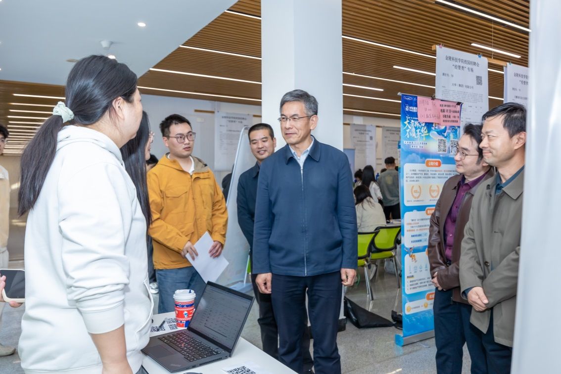 为增进2025届结业生高质量就业,,,,,,提供富厚的就业渠道,,,,,,11月7日下昼,,,,,,我校在江宁校区大学生运动中心一楼招聘大厅举行2025届结业生“经管类”校园专场招聘会。。。。。。。。校党委书记刘志远莅临现场调研用人单位招聘情形并慰问现场求职结业生,,,,,,党委办公室、招生与就业指导处、商学院相关认真人陪同。。。。。。。。