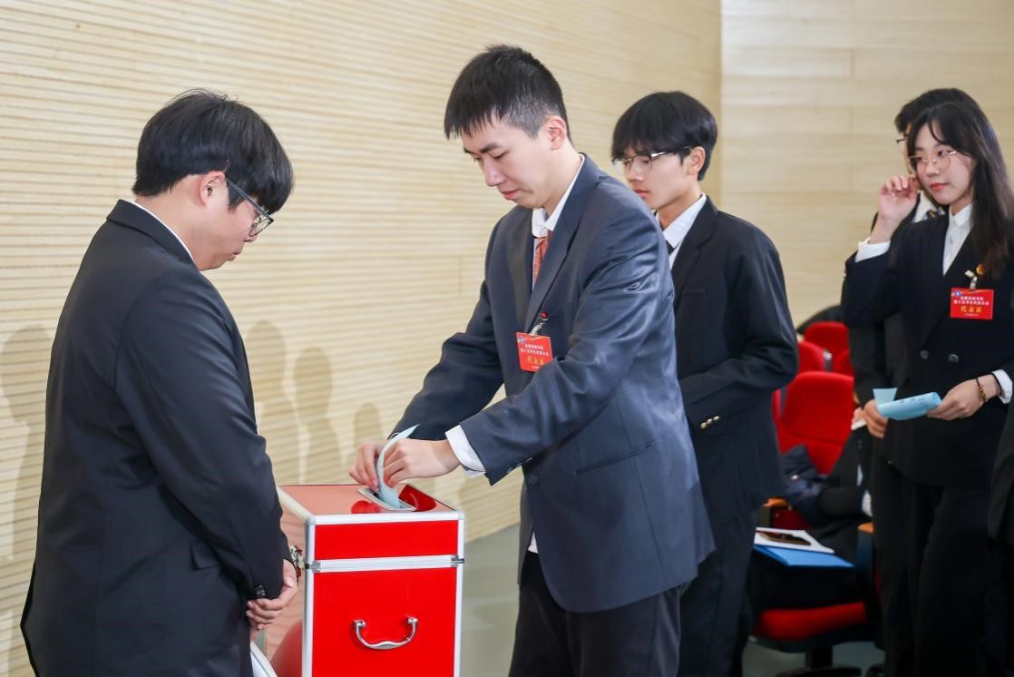 终结式上,,,,,,,,韩旭向大会的顺遂召开体现祝贺,,,,,,,,并对金科青年提出期望。。。。。。。大会终结后,,,,,,,,看个球app官网第十届学生委员会及主席团成员在图书馆报告厅召开了第一次全体聚会,,,,,,,,聚会表决通过了学生委员会秘书长、副秘书长名单,,,,,,,,校学生会新一届主席团成员张旭鑫同砚作了亮相讲话。。。。。。。