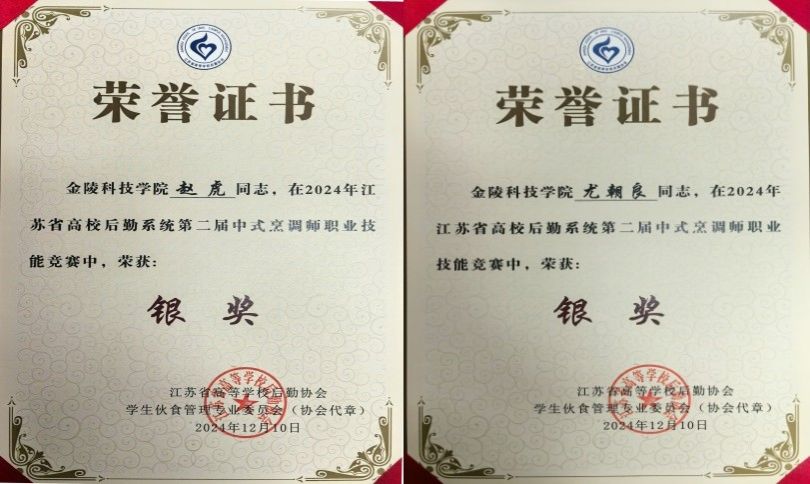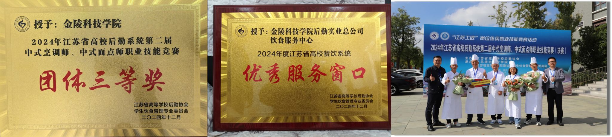 2024年12月24日,,,,,江苏省高校后勤系统第二届中式烹饪师、中式面点师职业手艺竞赛颁奖大会在扬州召开。。。。。。此次大赛吸引了来自全省50所高校的177名选手参赛,,,,,我校后勤实业总公司饮食效劳中心员工赵虎、尤朝良2人荣获单项银奖,,,,,饮食效劳中心被评为优异效劳窗口,,,,,学校荣获整体三等奖。。。。。。