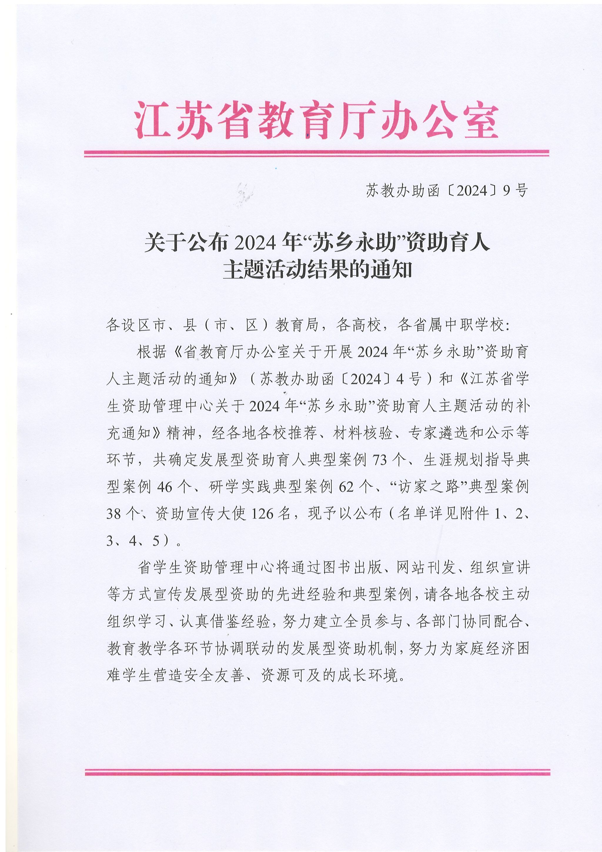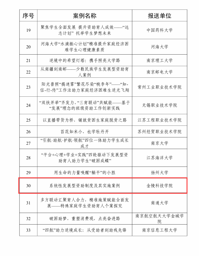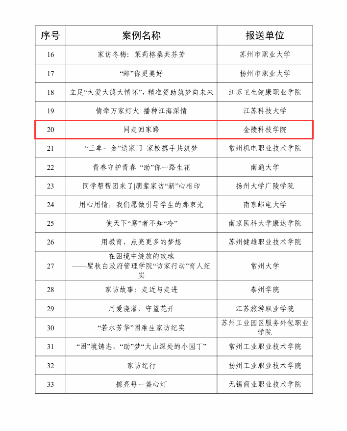 日前,,,,,江苏省教育厅下发《关于宣布2024年“苏乡永助”资助育人主题运动效果的通知》(苏教办助函〔2024〕9号)。。。。。我校《系统性生长型资助制度及着实施案例》荣获“生长型资助育人”典范案例,,,,,《同走回家路》荣获“访家之路”典范案例。。。。。