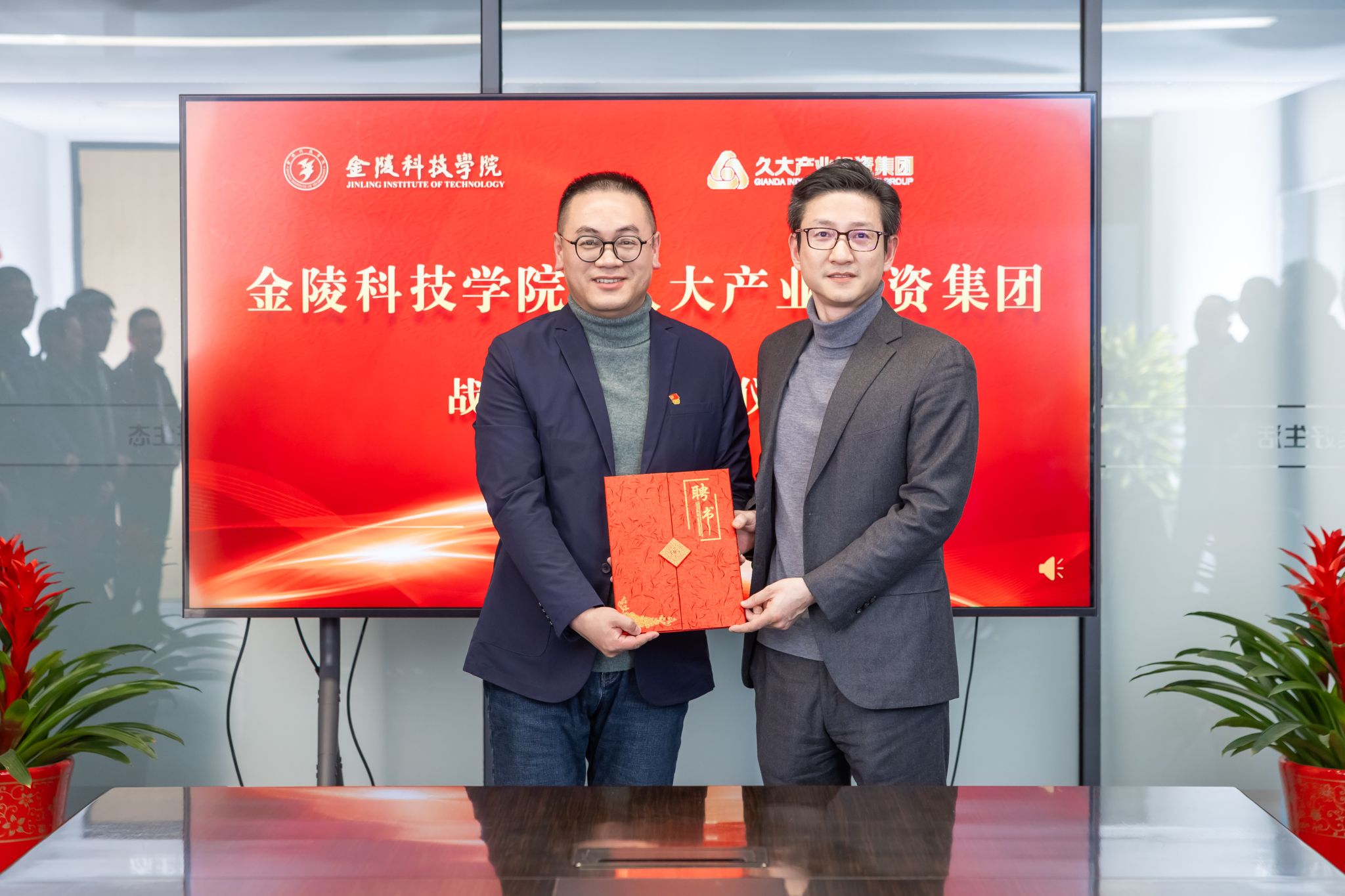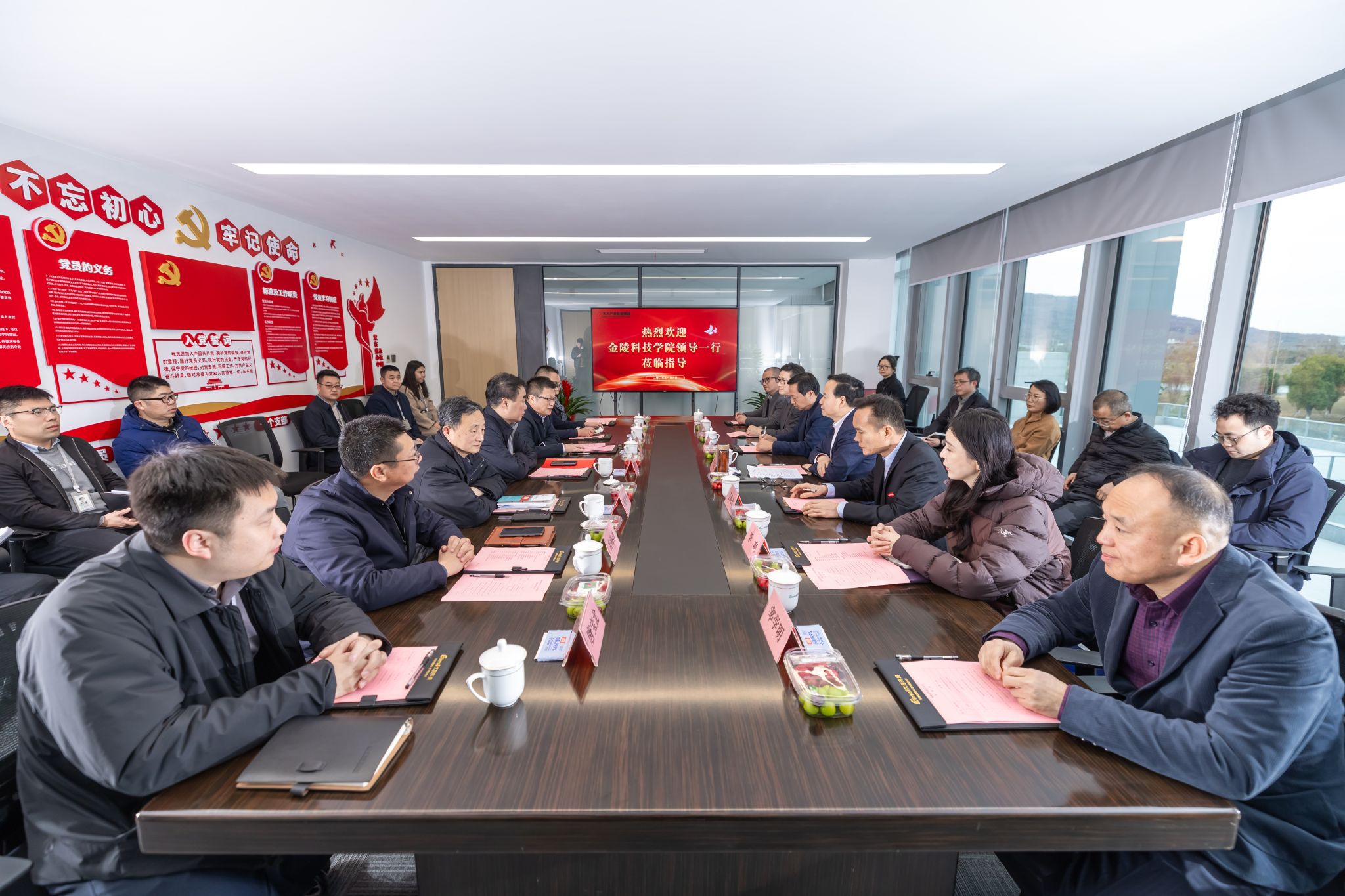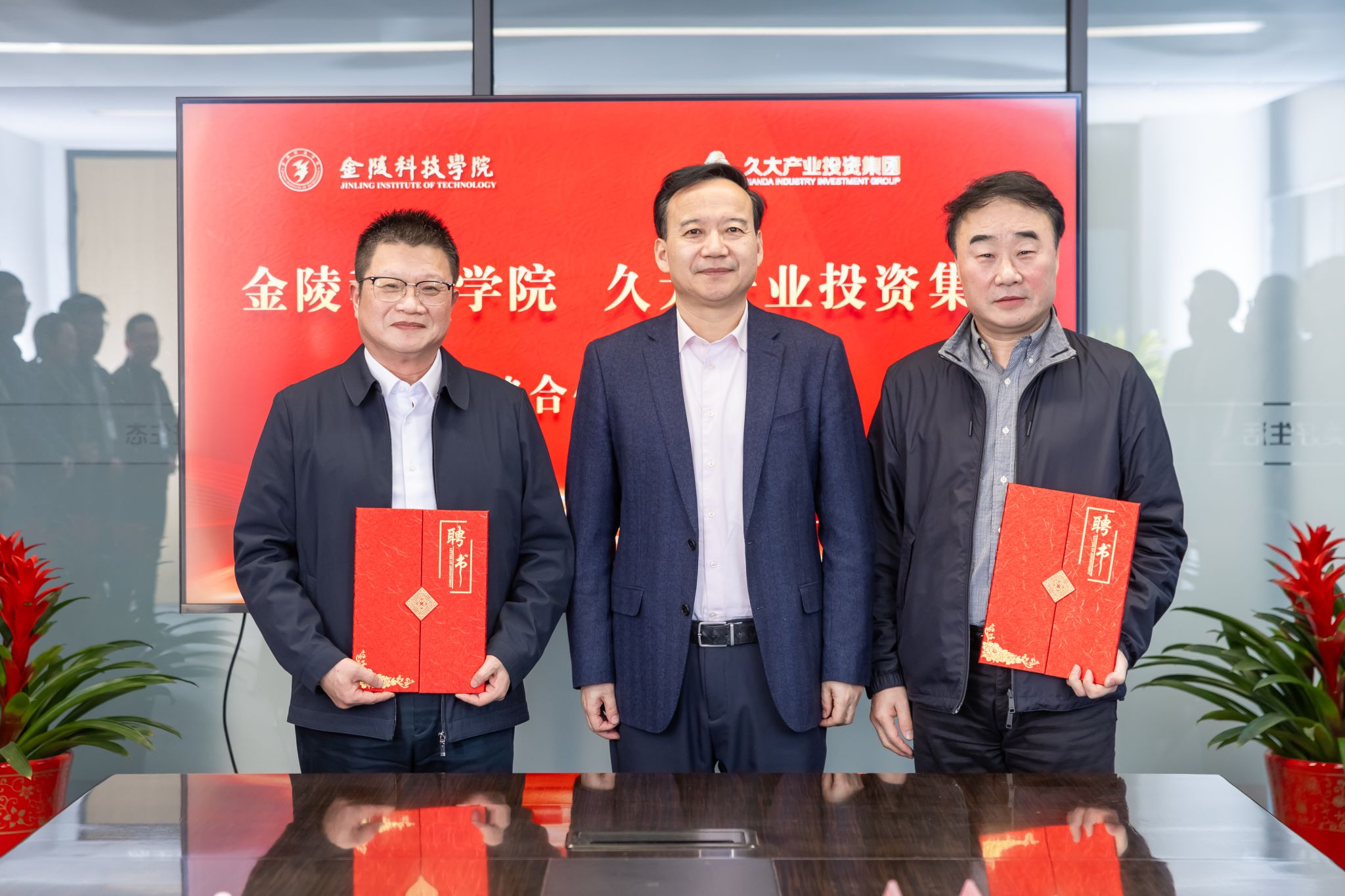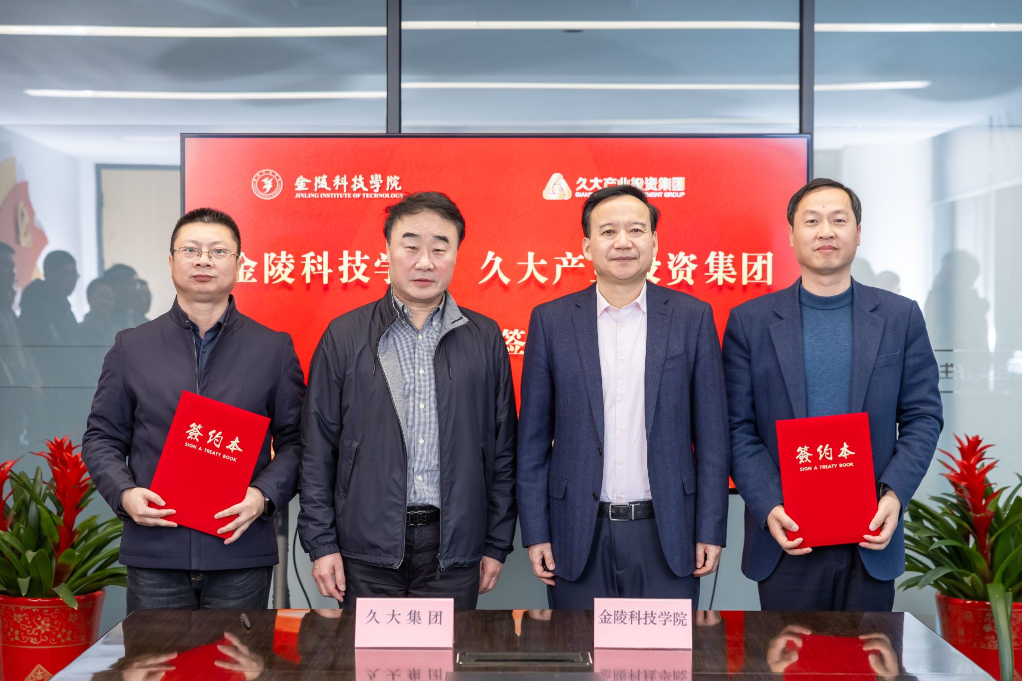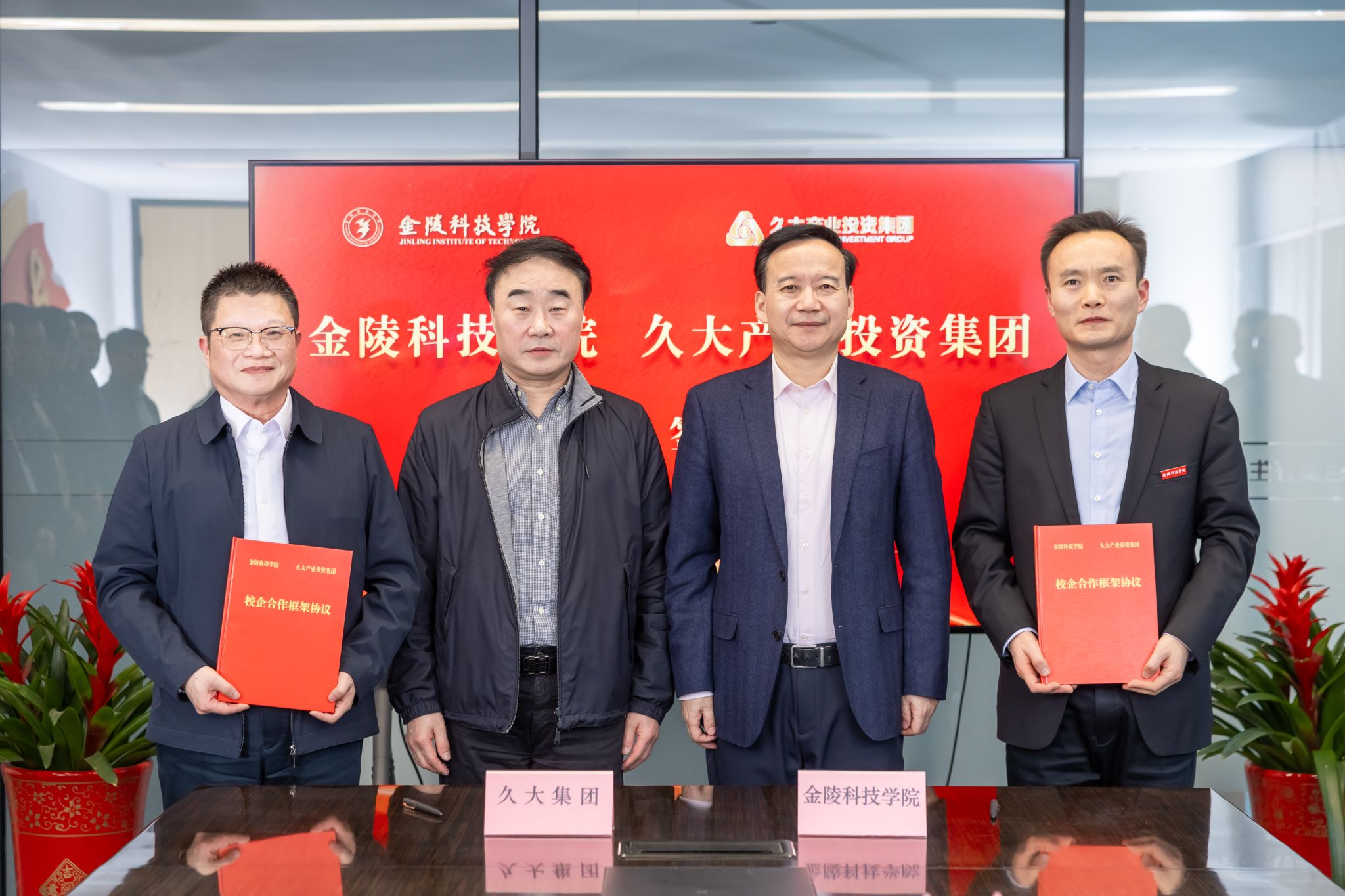 1月9日下昼,,,,,,校长刘永彪带队赴久大工业投资集团访企拓岗并举行校企相助签约仪式。。。。。。久大工业投资集团董事长陶绪祥、南京市园林工程治理协会会长陆文祥、久大工业投资集团副董事长华晓春、久大建设总裁朱兴国、凯进生态总裁唐宝龙、柯图科技总司理张慧,,,,,,江苏久智情形科技效劳有限公司相关部分认真人,,,,,,我校校长刘永彪,,,,,,副校长王延光,,,,,,校长办公室、相助与生长妄想处、科技处、商学院、园艺园林学院等部分、学院认真人及西席代表加入。。。。。。签约仪式在久大集团数字双碳工业园1号楼举行,,,,,,聚会由华晓春主持。。。。。。