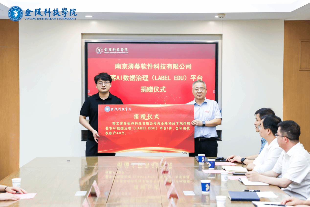 6月21日,,,,,,软件工程学院在行政楼240聚会室举行校友企业南京薄幕软件科技有限公司向母校捐赠“书生AI数据治理(LABEL EDU)平台”仪式。。。。。校党委书记刘志远、副校长高永祥,,,,,,南京薄幕软件科技有限公司总司理任远东(2015级校友),,,,,,南京薄幕软件科技有限公司执行手艺总监李海洋(2015级校友),,,,,,校友办公室认真人及软件工程学院向导班子成员和师生代表加入运动。。。。。