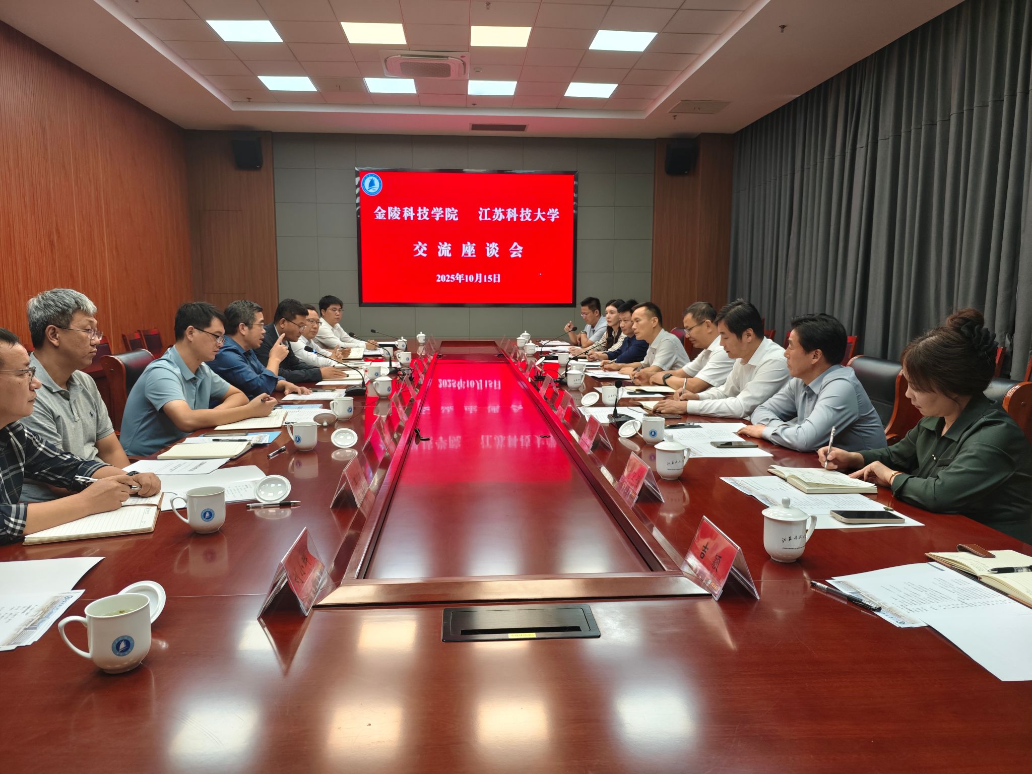 10月15日下昼,,,,,副校长王延光向导教务处,,,,,人力资源处,,,,,研究生处、学科建设办公室,,,,,科技处和财务处等部分认真人前往江苏科技大学,,,,,就教学科研激励事情、师资步队建设以及“十五五”人才与师资步队建设妄想体例等主题举行调研。。。。。。江苏科技大学副校长施伟东向导教务处、人事处、研究生院、科学手艺研究院、总会计师办公室相关认真人热情接待了王延光一行。。。。。。