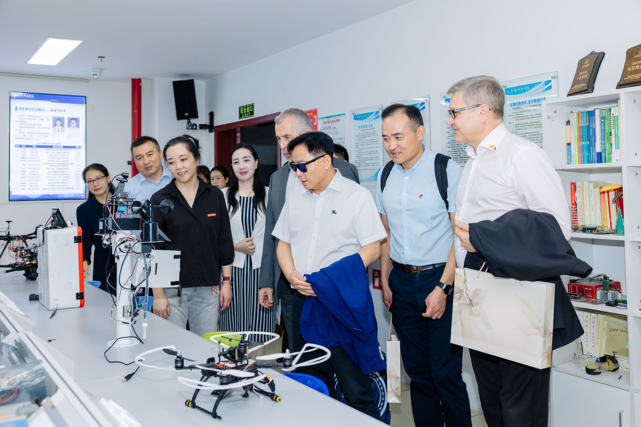代表团旅行了电子信息工程学院、质料工程学院、艺术学院及金科创客汇,,,,,,,对我校在产教研融合方面取得的效果给予赞赏,,,,,,,以为金科创客汇的创业孵化模式契合德国双元制教育理念。。。。。。。