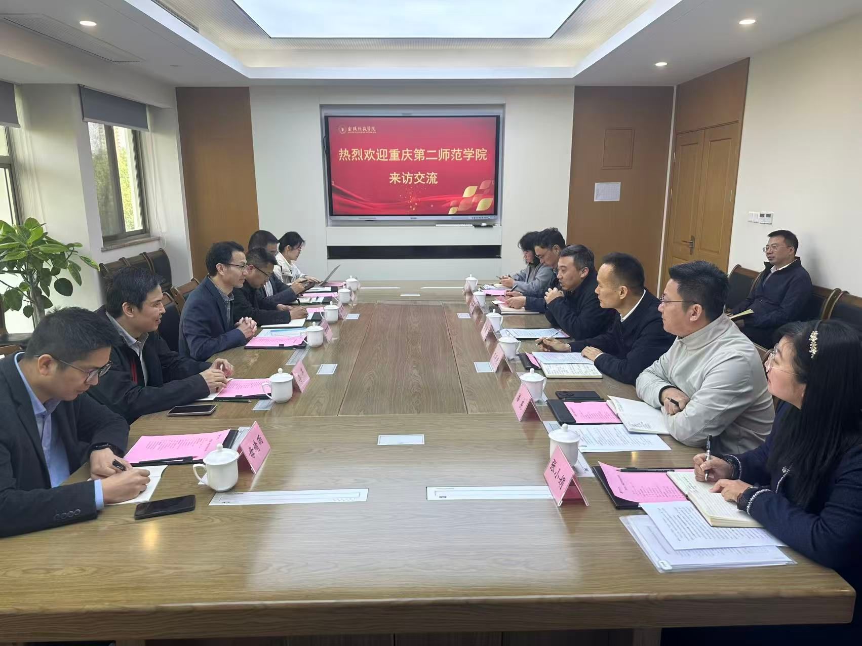 10月22日,,,,,重庆第二师范学院校长万书辉向导学校教务处、申硕办、发规处等相关部分认真人来校调研。。。。。。。校长季赛、副校长王延光及相关部分认真人加入接待运动。。。。。。。