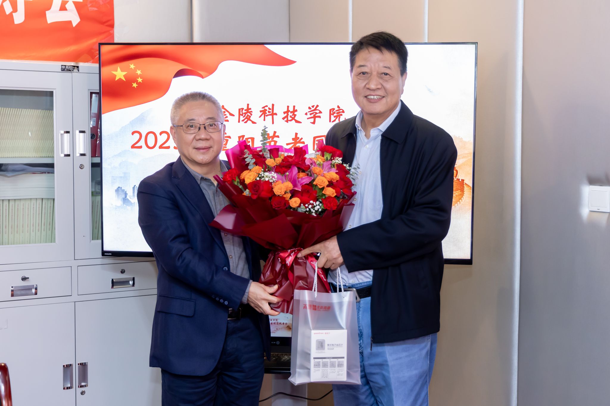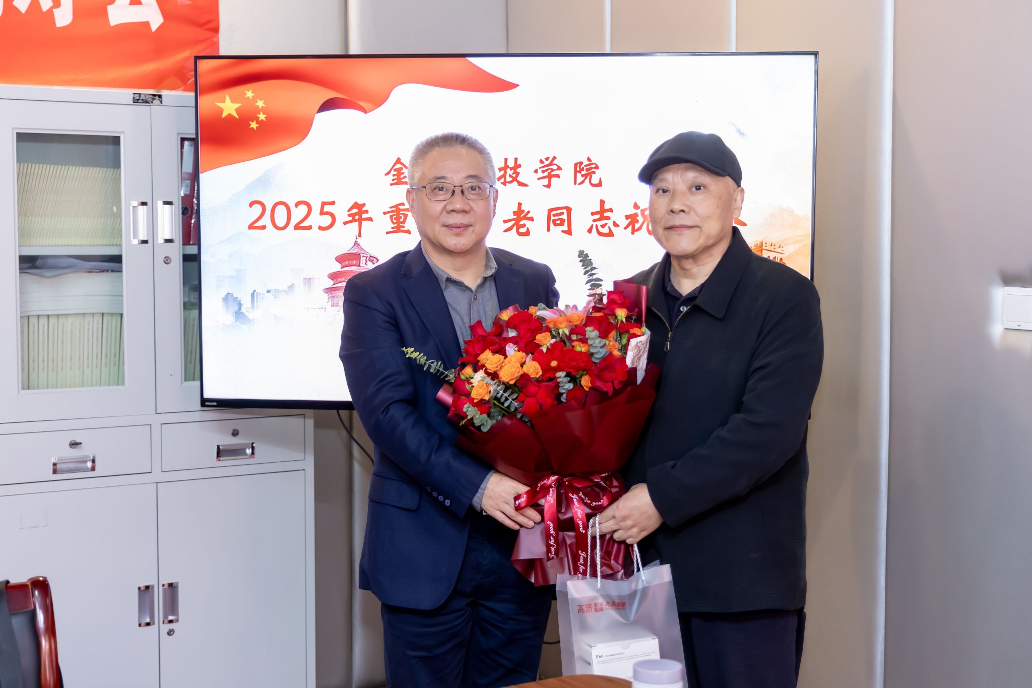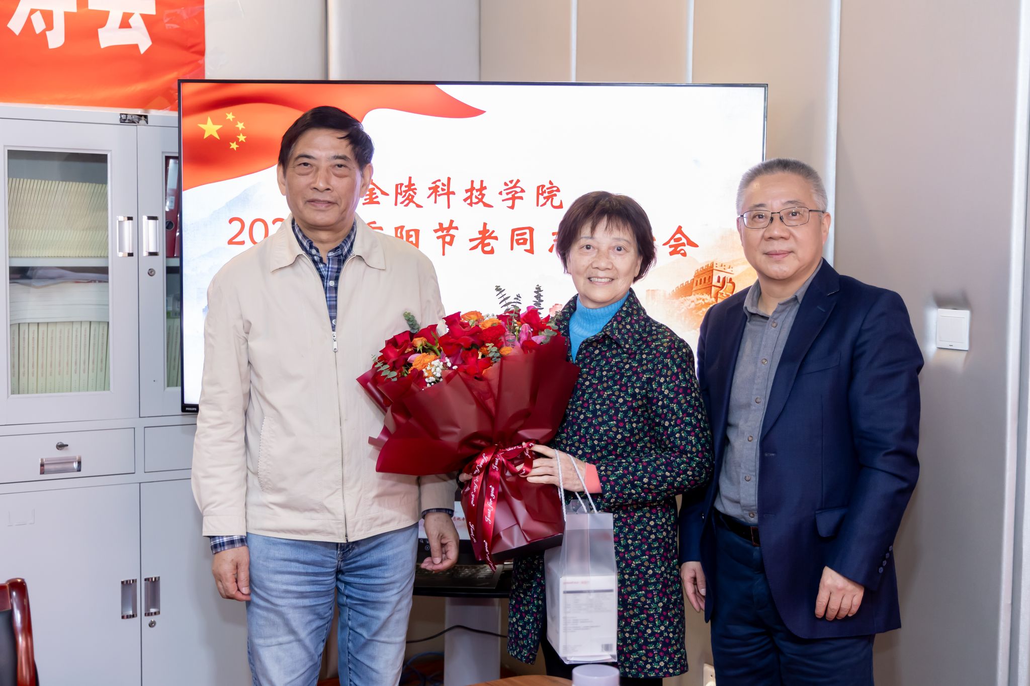 10月29日,,,,,,,,我校在白下校区离退休聚会室举行2025年重阳节老同志祝寿会。。。。。副校长高永祥、校退教协会长刘卫东出席祝寿会,,,,,,,,我校2025年满90、80、70周岁老寿星代表和离退休事情处全体职员加入运动。。。。。