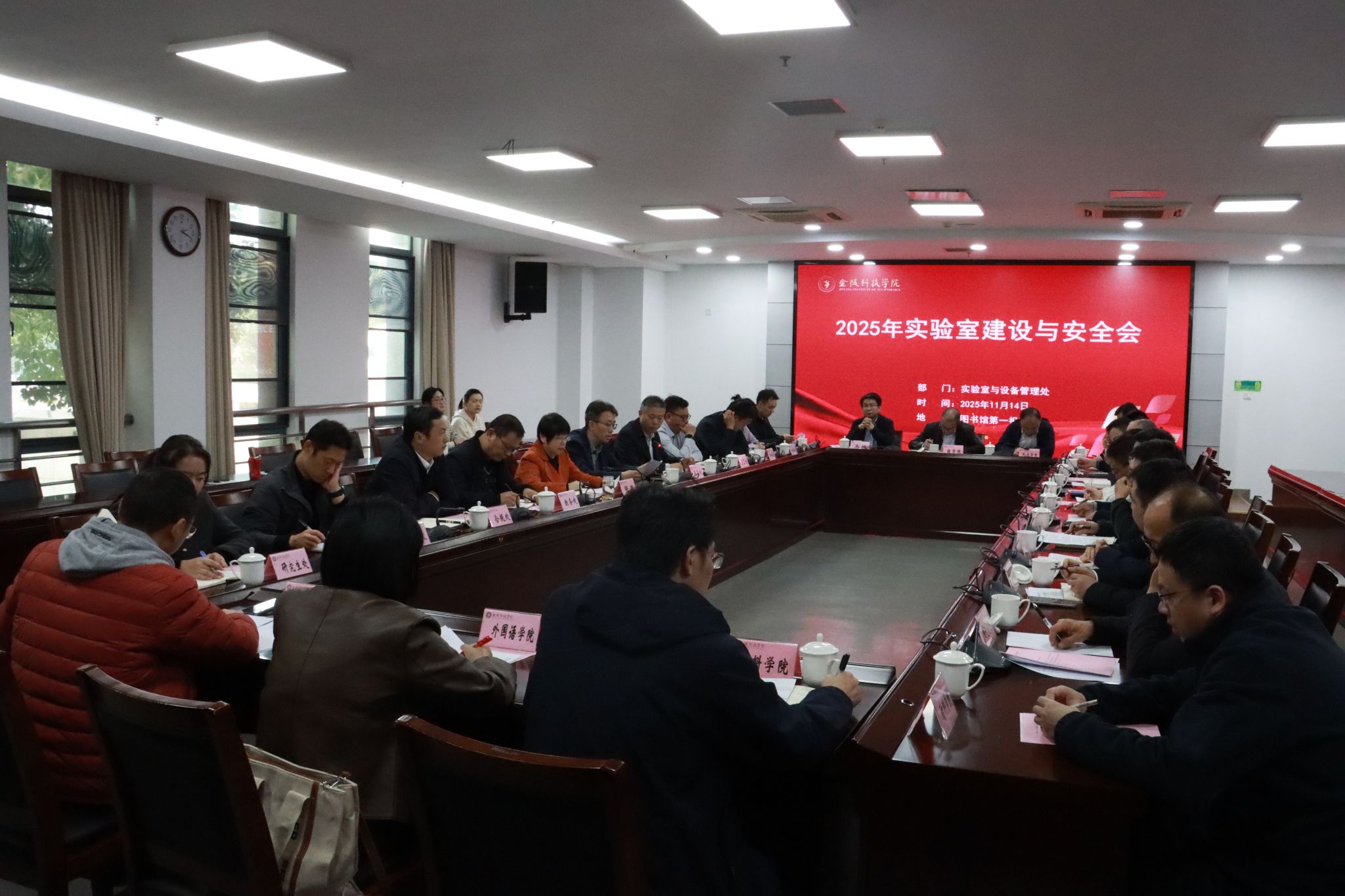 为进一步规范实验室建设治理,,,,,,压实清静责任,,,,,,包管学校教学科研事情平稳有序开展,,,,,,11月14日下昼,,,,,,我校召开实验室建设与清静聚会,,,,,,副校长张燕主持聚会,,,,,,实验室治理事情向导小组成员、实验室与装备治理处全体成员及各学院实验室认真人加入聚会。。。。。