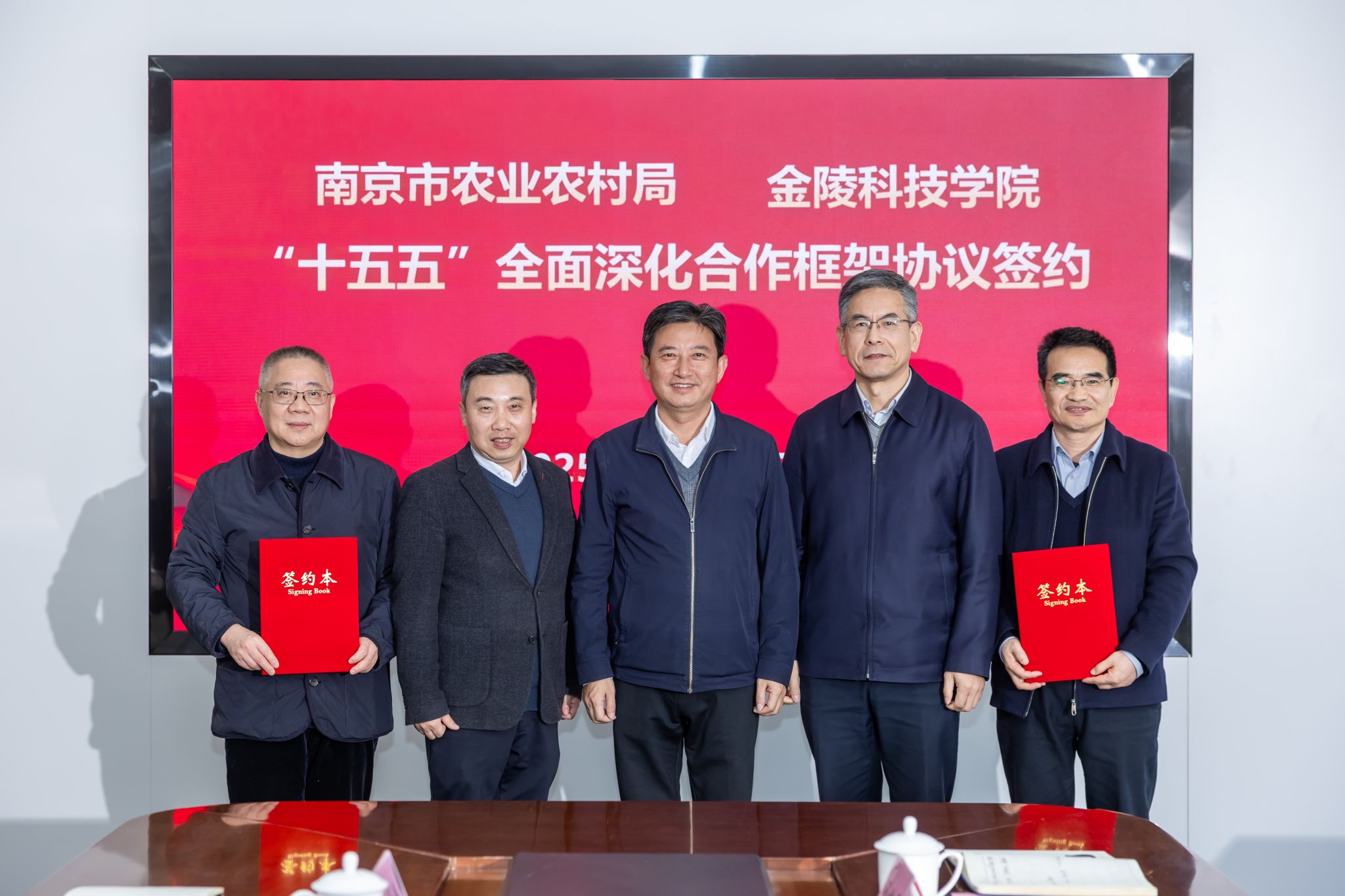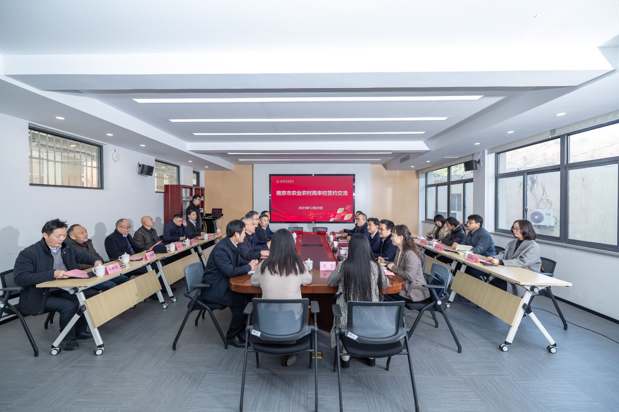 12月29日,,,,,,,,南京市农业农村局党组书记、局长张屹,,,,,,,,副局长俞继东向导办公室、墟落工业生利益、科技教育处、蔬菜园艺处、畜牧与畜禽屠宰治理处、种业治理处、市农业手艺推广站、市农业装备推广中心等认真人来校调研交流并与我校签署“十五五”周全深化相助框架协议。。。。。校党委书记刘志远、校长季赛出席聚会。。。。。签约运动由党委常委、副校长高永祥主持。。。。。