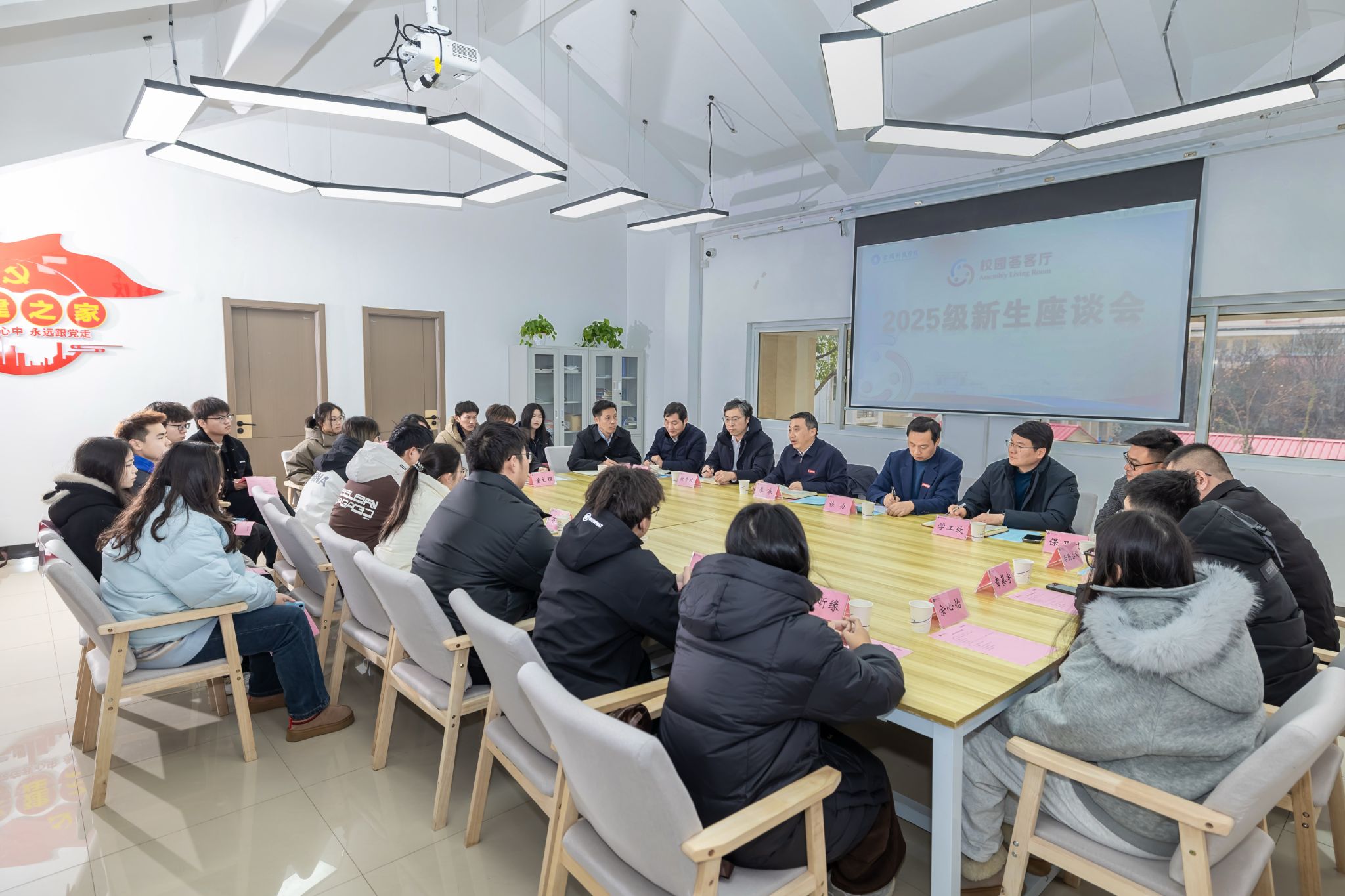 1月6日,,,,,我校在江宁校区南区01栋“一站式”学生社区召开2025级新生代表座谈会,,,,,校长季赛与校长办公室、教务处、学生事情处、研究生处、守卫处、后勤治理处、后勤实业公司等部分认真人一同加入。。。。。。。。