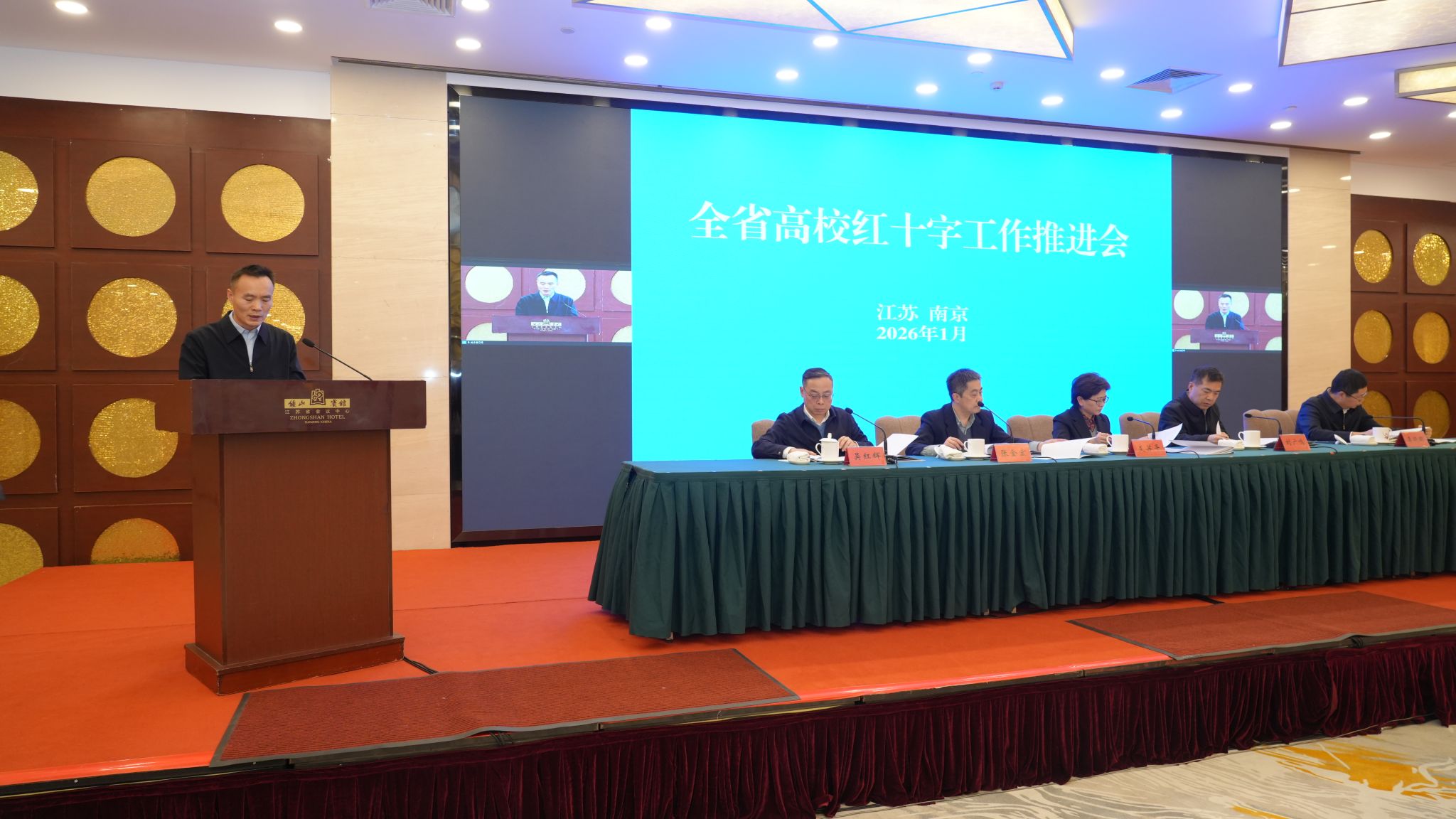 1月12日,,,,,,由江苏省红十字会、江苏省教育厅、江苏省卫生康健委员会、共青团江苏省委团结举行的全省高校红十字事情推进会在宁召开,,,,,,全省各高校、各设区市红十字会、教育局、卫健委、团委相关职员加入聚会。。。。。。副校长王延光及体育部、团委、后勤治理处相关职员和学生自愿者代表加入聚会。。。。。。