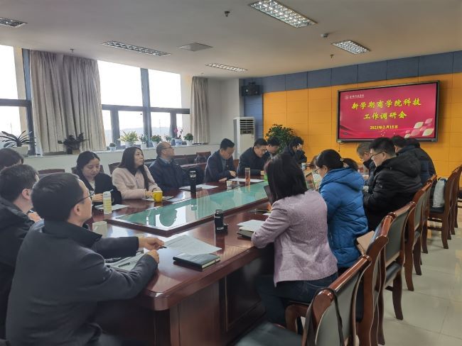 2月15日下昼,,,,,校长刘永彪到商学院调研指导科研事情,,,,,科技处相关认真人、商学院科研主干及新引进的领武士才和青年博士加入调研会。。。。。。