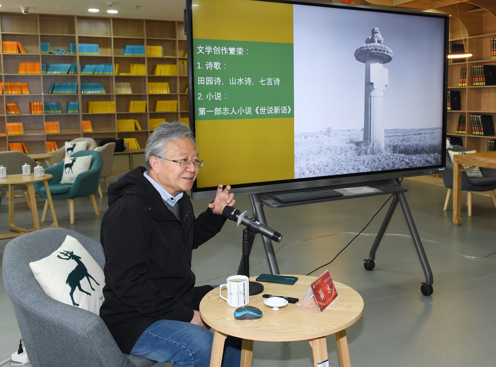 薛冰先生以“从六朝古都到文学之都”为题,,,,,,从“六朝南京立文学规范”“文脉绵延效果绚烂”“今世创作、文学高原”等方面为师生们讲述了南京绵延的文脉基因、深挚的文学秘闻和蓬勃的文学气象。。。。。。。。他在讲座中娓娓道来,,,,,,引经据典,,,,,,赢得了在场师生的阵阵掌声。。。。。。。。