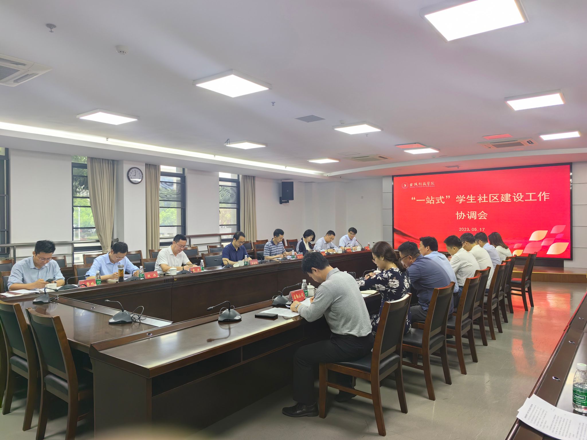 5月17日上午,,,,,,我校在江宁校区图书馆第一报告厅召开“一站式”学生社区事情协调会,,,,,,校党委副书记单晓峰出席聚会并讲话。。。。。。。。党委办公室、党委组织部、党委宣传部、校长办公室、教务处、人力资源处、学生事情处、招生与就业指导处、财务处、实验室与装备治理处、守卫处、后勤治理处、团委、信息化建设与治理中心、后勤实业总公司等相关部分认真人加入聚会。。。。。。。。