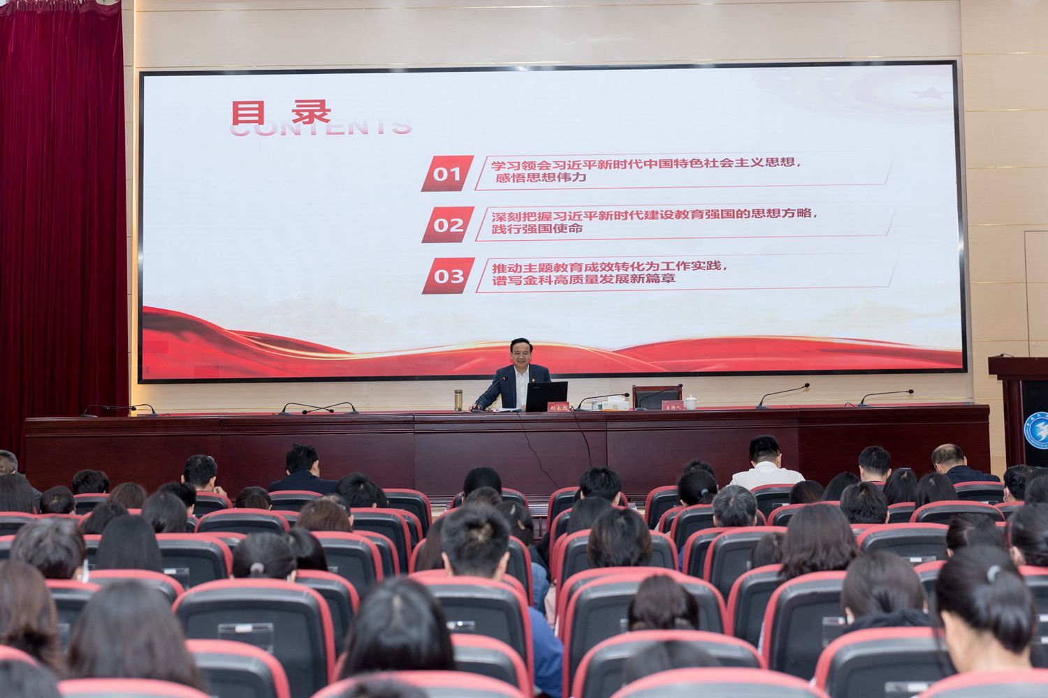 刘永彪以《感悟头脑伟力 践行强国使命——谱写金科高质量生长新篇章》为题,,,,,,,从学习体会习近平新时代中国特色社会主义头脑,,,,,,,感悟头脑伟力;;;;;;;深刻掌握习近平新时代建设教育强国的头脑方略,,,,,,,践行强国使命;;;;;;;推动主题教育效果转化为事情实践,,,,,,,谱写金科高质量生长新篇章三个方面,,,,,,,联系事情现实,,,,,,,教学了一堂生动的党课。。。。。。。。
