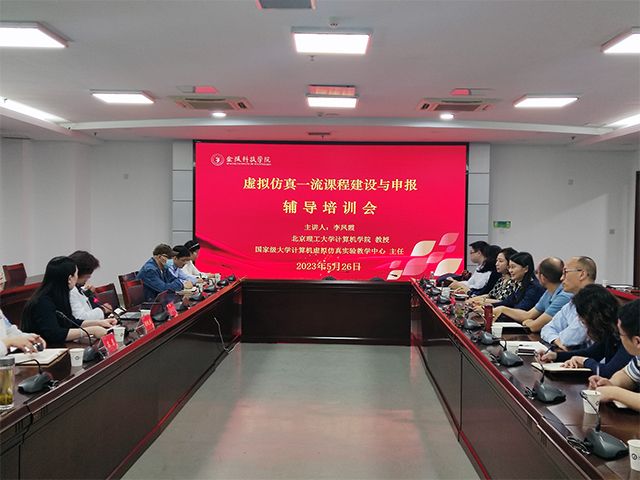 5月26日上午,,,,,,,我校在图书馆第一报告厅举行虚拟仿真实验教学一流课程建设与申报培训会,,,,,,,特邀北京理工大学李凤霞教授作专题报告。。。。。。。副校长顾晓燕主持培训会,,,,,,,各虚拟仿真项目相关西席、教务处主要认真人加入了聚会。。。。。。。
