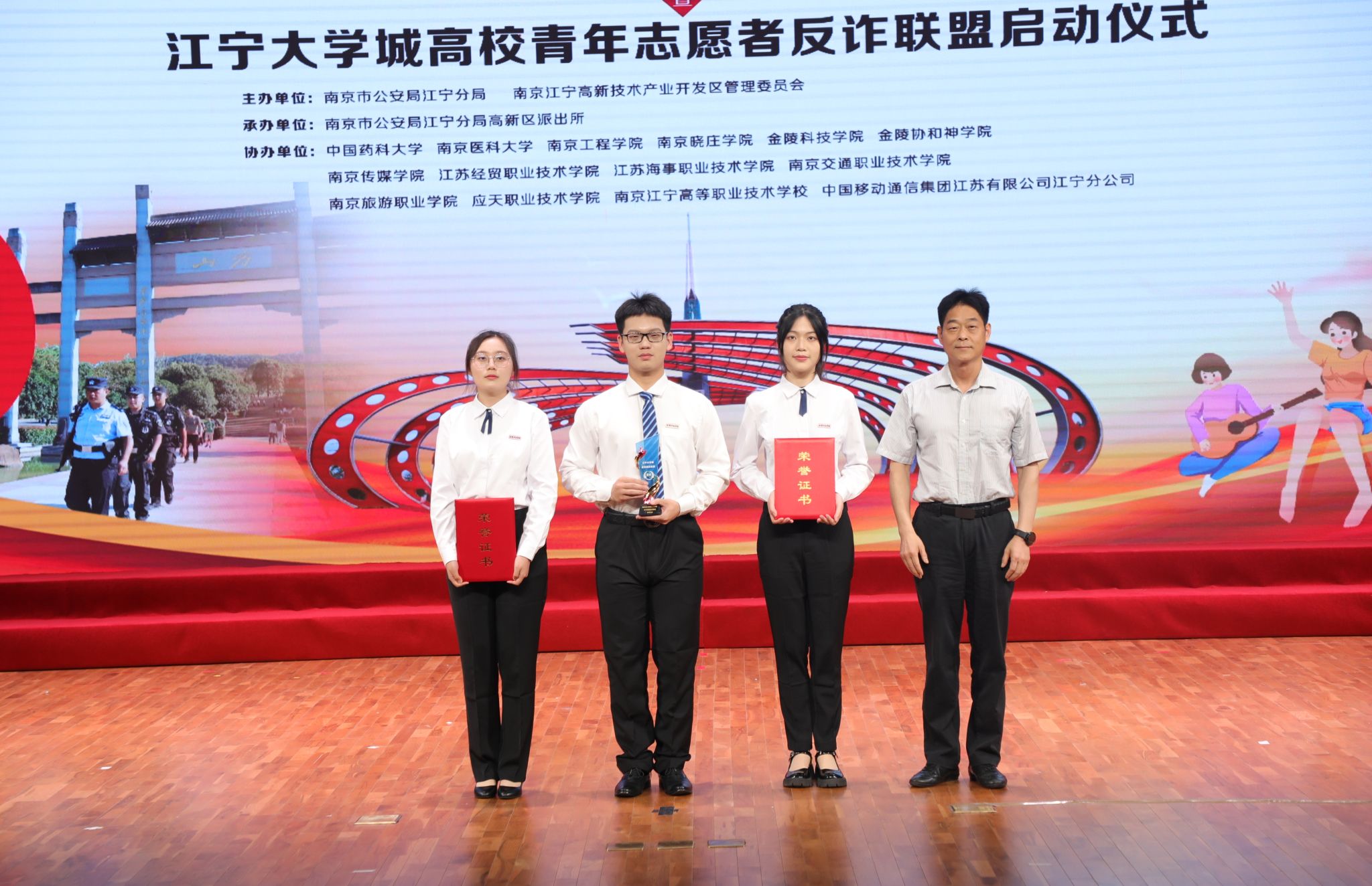 6月2日上午,,,,,,,,由江宁公循分局、江宁高新区管委会主理,,,,,,,,江宁公循分局高新区派出所承办的江宁大学城反诈知识竞赛暨江宁大学城高校青年自愿者反诈同盟启动仪式在南京工程学院举行,,,,,,,,我校副校长叶智锐应邀出席。。。。。。。。