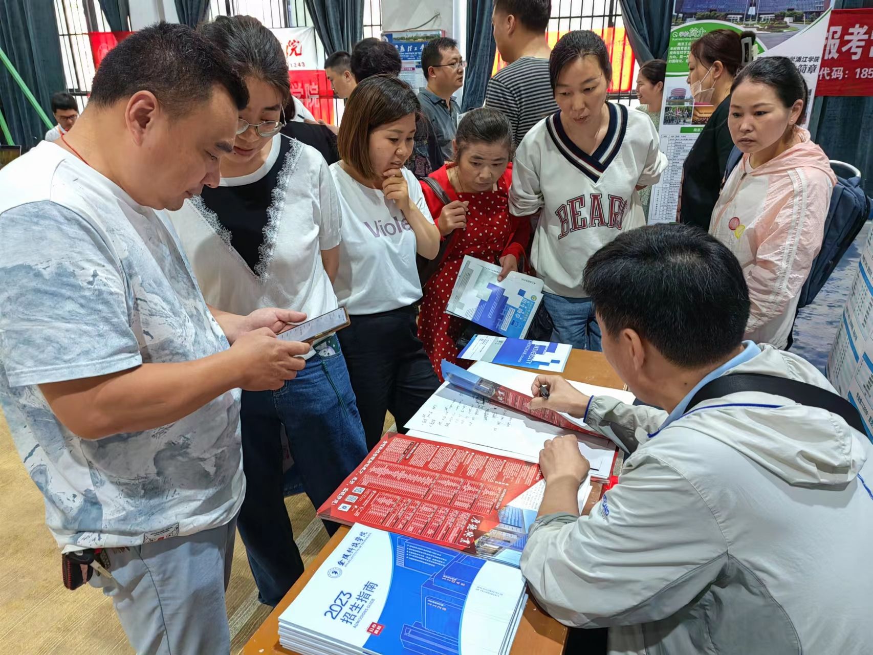 招生咨询现场,,,,,,高永祥慰问了各驻点招生事情职员,,,,,,对先生们的辛勤支付体现谢谢。。。。。。。。他深入一线,,,,,,与前来咨询的家长面扑面交流,,,,,,耐心解答疑惑。。。。。。。。