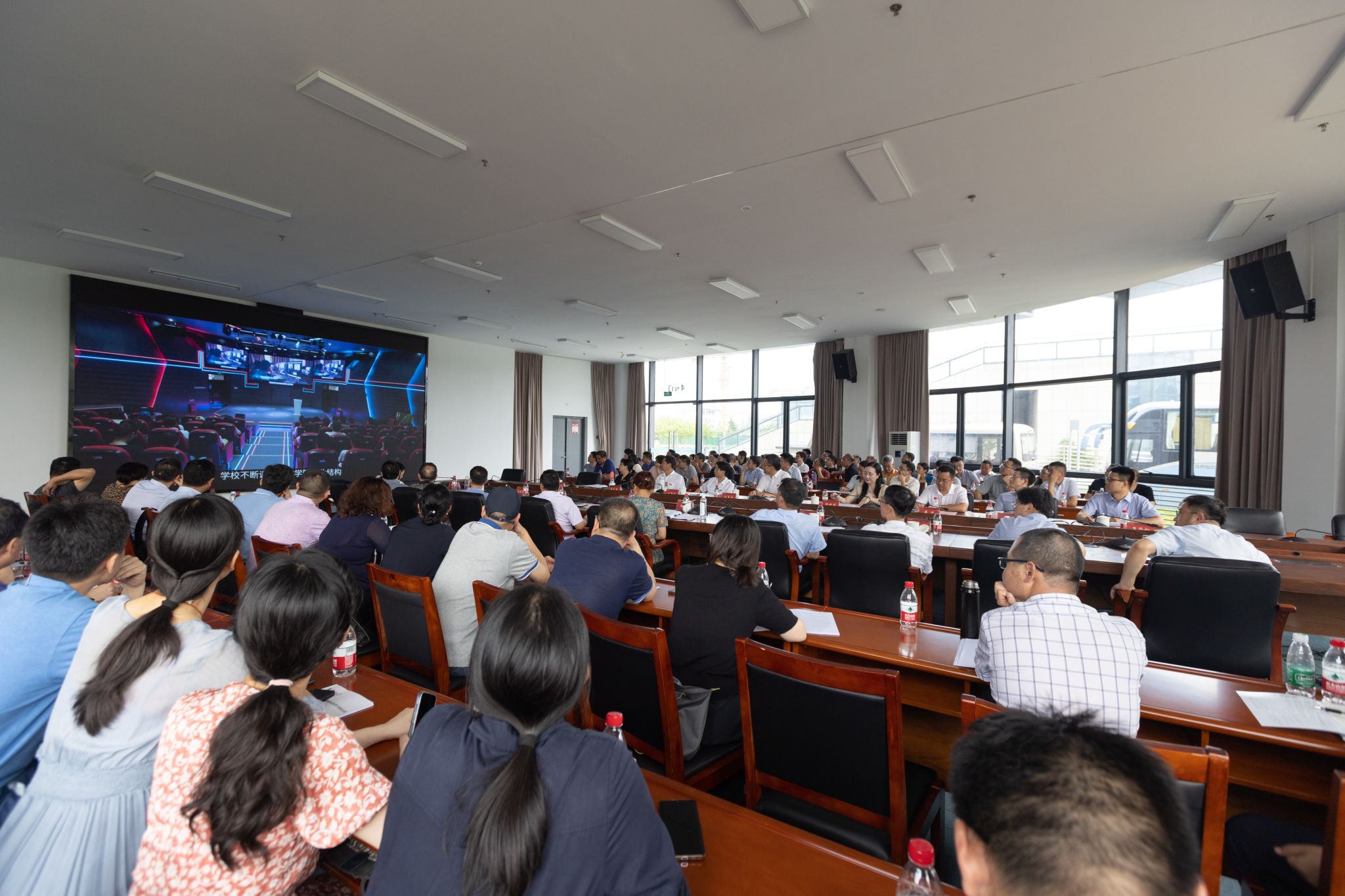 7月4日下昼,,,,,衢州学院党委书记杨玲、校长郑友取向导校向导班子和中层干部一行70余人来我校调研交流。。。。。我校党委书记刘志远、副校长顾晓燕、副校长叶智锐及党委办公室、教务处、科技处、研究生处、教学质量评估中心认真人加入交流座谈。。。。。