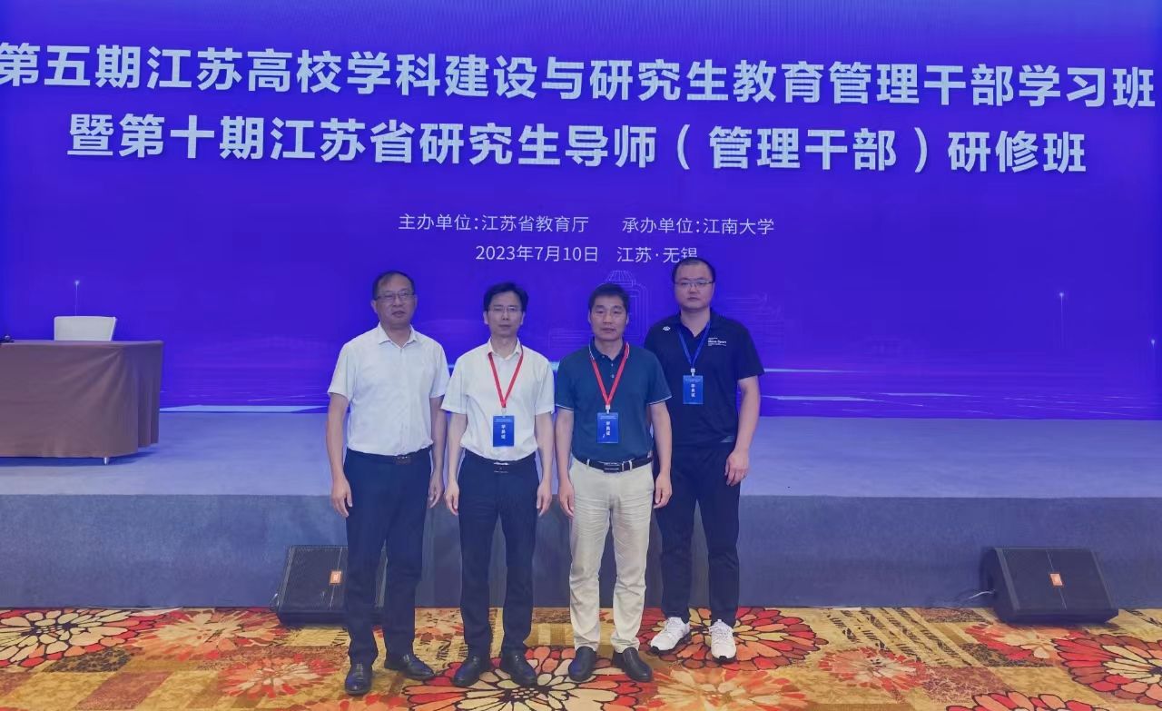 7月10日,,,,,,,由江苏省教育厅主理,,,,,,,江南大学承办的第五期江苏高校学科建设与研究生教育治理干部学习班在无锡举行。。。。。。。省教育厅副厅长袁靖宇出席并讲话,,,,,,,中国工程院院士、江南大学校长陈卫出席并致辞。。。。。。。副校长叶智锐向导学科建设办公室主任张长青、软件工程学院院长曾岳、商学院会计系系主任刘小萌加入学习。。。。。。。