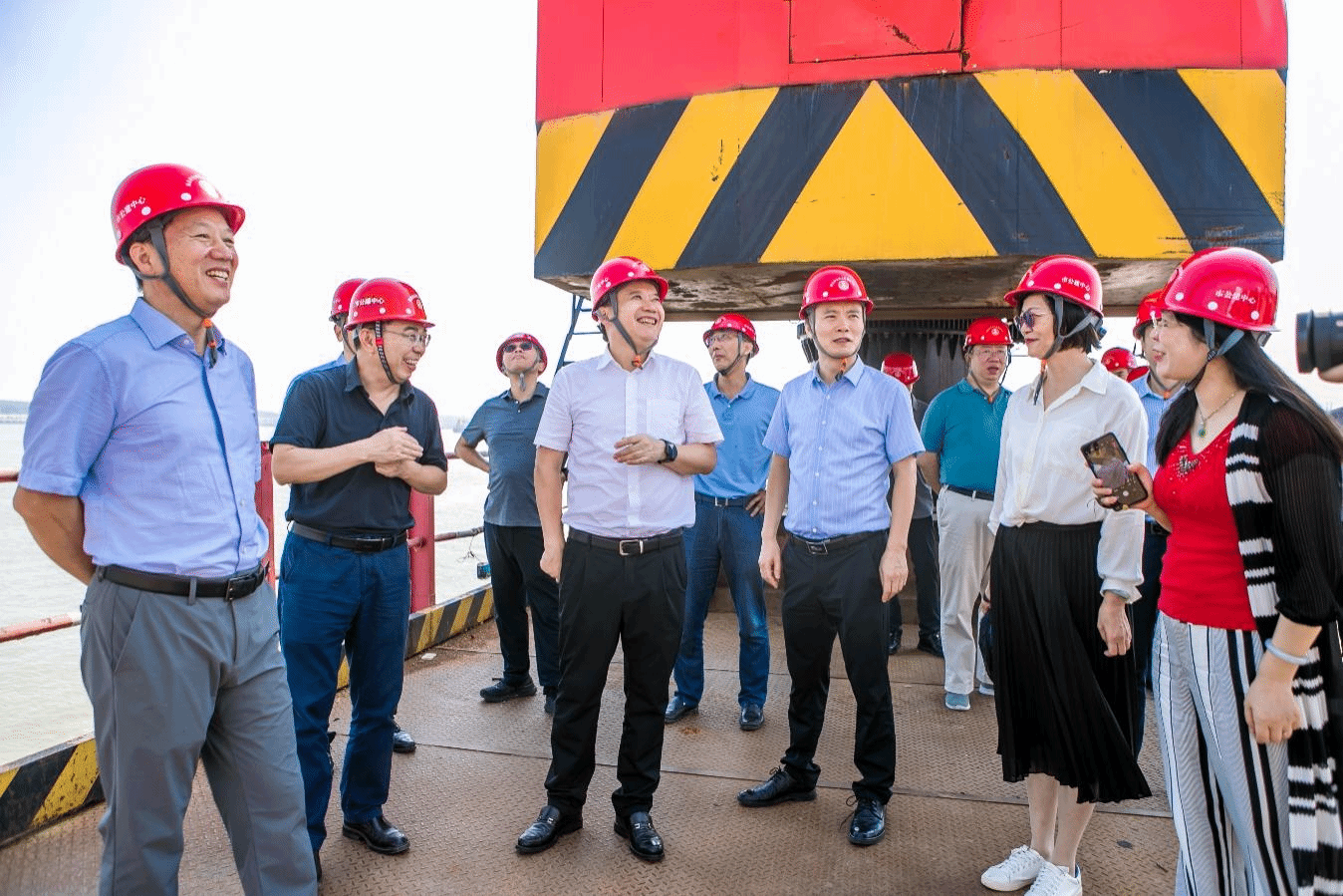 8月25日,,,,,,,校长刘永彪向导副校长倪杰、纪委书记王延光、副校长叶智锐等来到正在施工的南京市仙新途经江通道现场考察调研。。。。。。南京市公共工程建设中心党组书记、主任武焕陵,,,,,,,副主任、总工程师章登精,,,,,,,副主任郭志明等热情接待了刘永彪一行。。。。。。