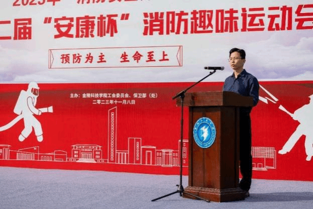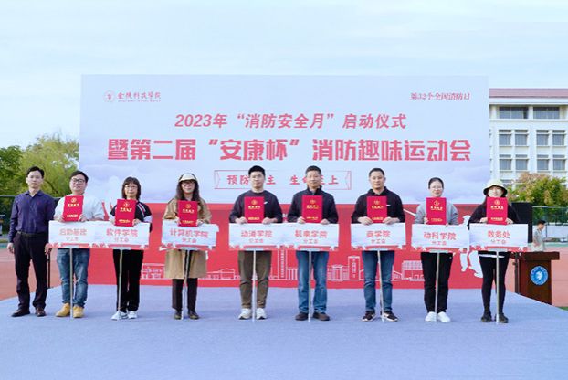 11月8日,,,,,,,在第32个天下消防日来临之际,,,,,,,我校在江宁校区南区体育场举行了2023年度“消防清静月”运动启动仪式暨第二届“安康杯”教职工消防意见意义运动会。。。。。。。。南京市科教卫体工会团结会四级调研员王红星、南京市江宁区消防救援大队副大队长钟鹏、照料吕天杰应邀加入运动,,,,,,,副校长叶智锐出席运动并讲话,,,,,,,守卫随处长骆德军主持启动仪式。。。。。。。。