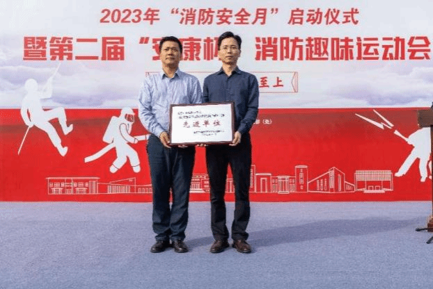 启动仪式上,,,,,,,王红星为我校揭晓“2022年度南京市科技教育卫生体育系统‘安康杯’竞赛运动先进单位”奖牌,,,,,,,叶智锐代表学校领奖。。。。。。。。钟鹏为我校新加入的学生义务消防队队员揭晓聘书。。。。。。。。