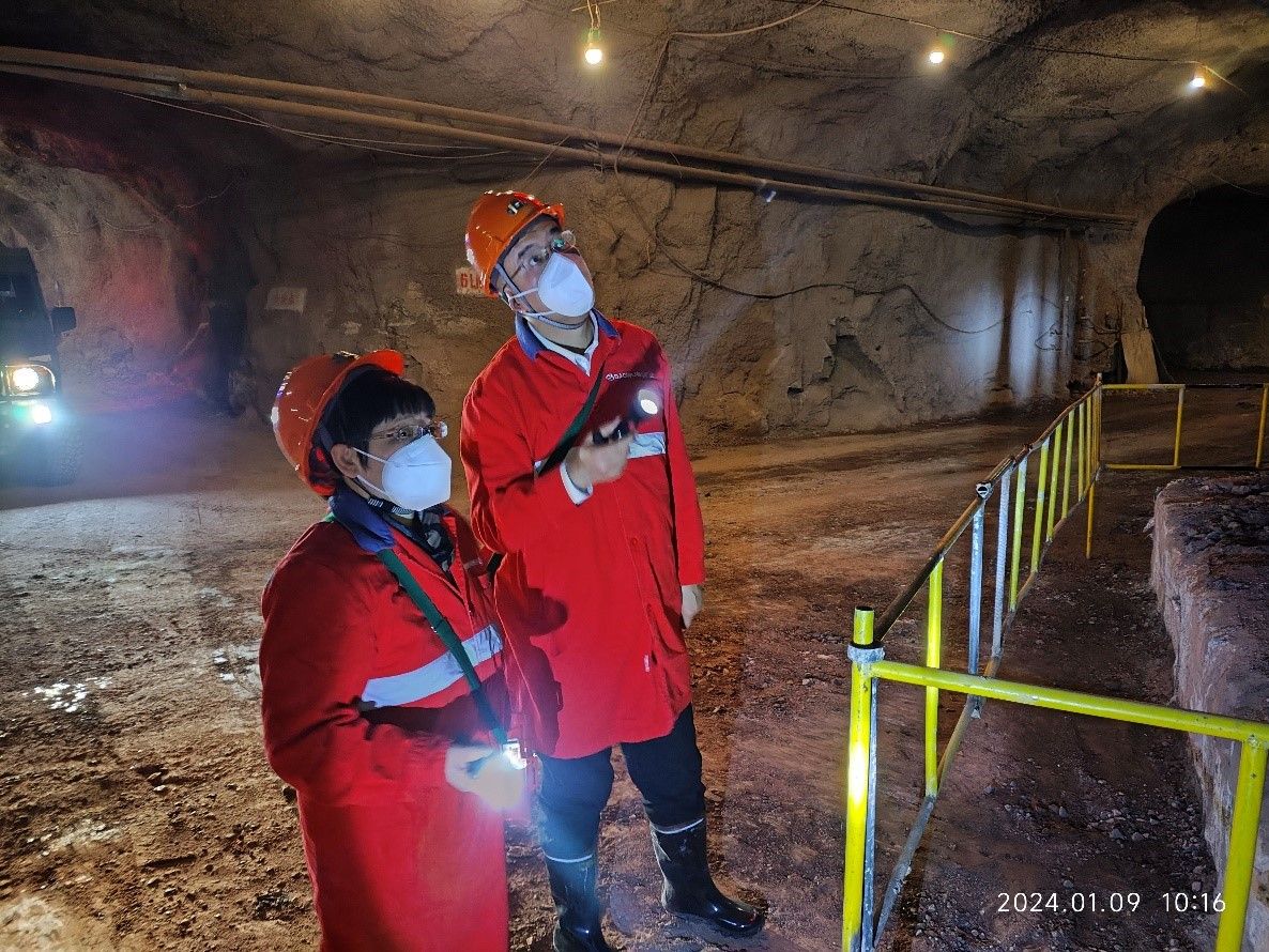 叶飏先容了梅山矿业的生长妄想和重点事情,,,,,,,,并陪同调研团队下深入矿井下近400米处的铁矿爆破巷道,,,,,,,,先容了企业现在面临的大料识别与分拣、矿脉含量精准判断、钻孔装备瞄准及自动化、铁矿爆破巷道迎头网络笼罩等问题。。。。。。张燕针对现场生产工艺、装备数字化、情形感知现状与叶飏探讨解决计划。。。。。。