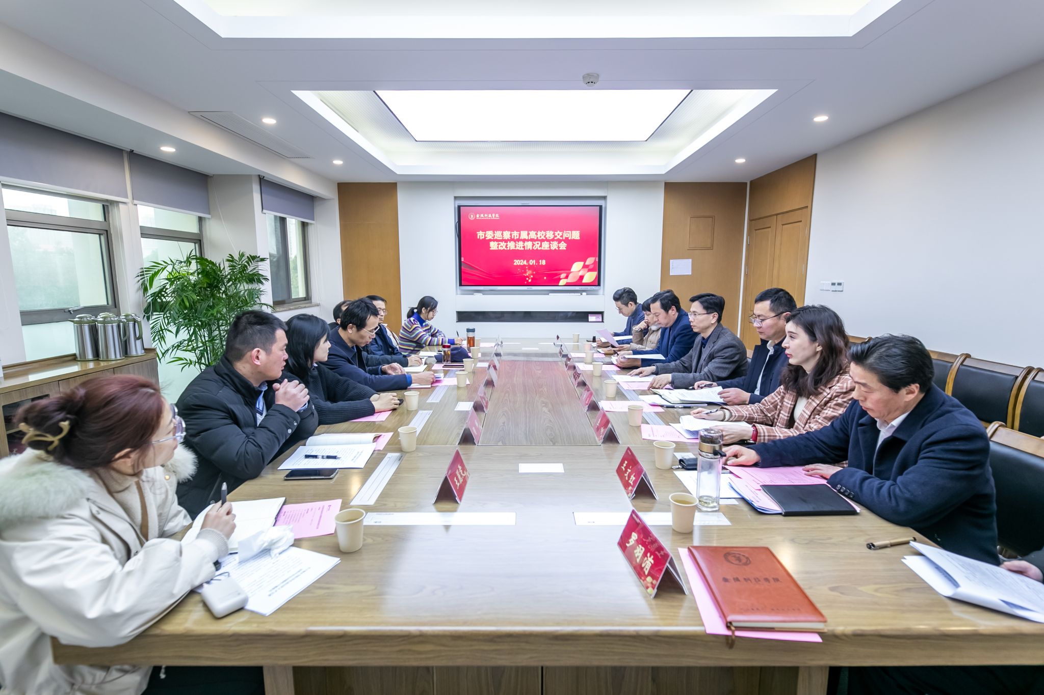 1月18日,,,,,由市科技局牵头的市委巡察市属高校移交问题整改推进小组来我校调研座谈。。。。。市科技局副局长王愿华、市教育局机关纪委专职副书记韦亮、市人社局人才开发处副处长杨欢、市审计局科教文处副处长冒兵、市发改委立异和高手艺生利益干部陶辉等一行对我校在高条理人才引进、科研事情等方面保存的共性问题举行交流。。。。。副校长叶智锐主持座谈会,,,,,党委办公室、校长办公室、人力资源处、科技处、财务处、审计处、商学院等相关部分认真人加入聚会。。。。。