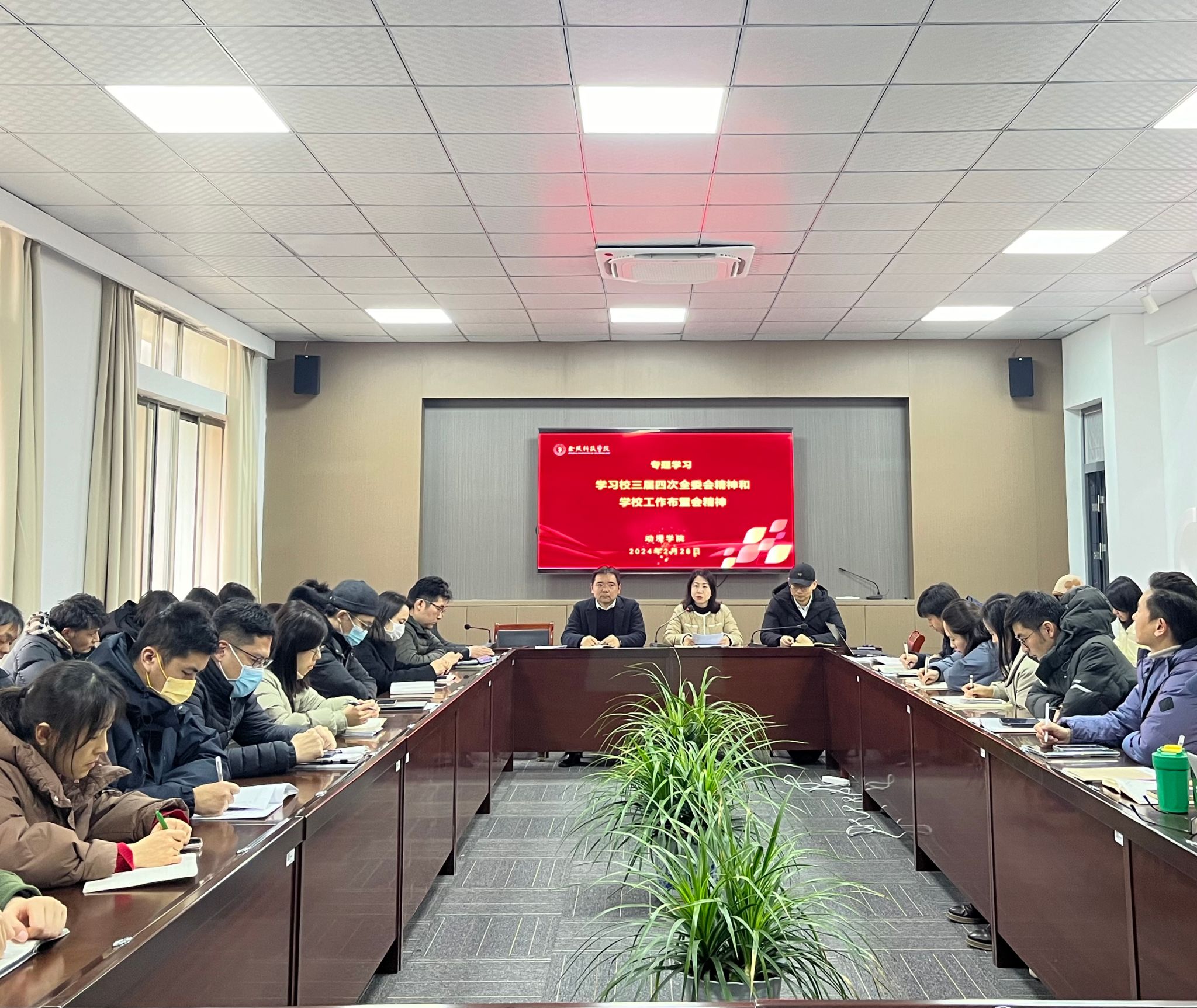 2月28日下昼,,,,,,我校各二级党组织组织全体教职工专题学习了校三届四次全委会精神和2024年学校事情安排会精神,,,,,,重点学习了《看个球app官网2024年党政事情要点》以及校党委书记刘志远在2024年学校事情安排会上的讲话、校长刘永彪在2024年学校事情安排会上作的事情报告。。。。。。