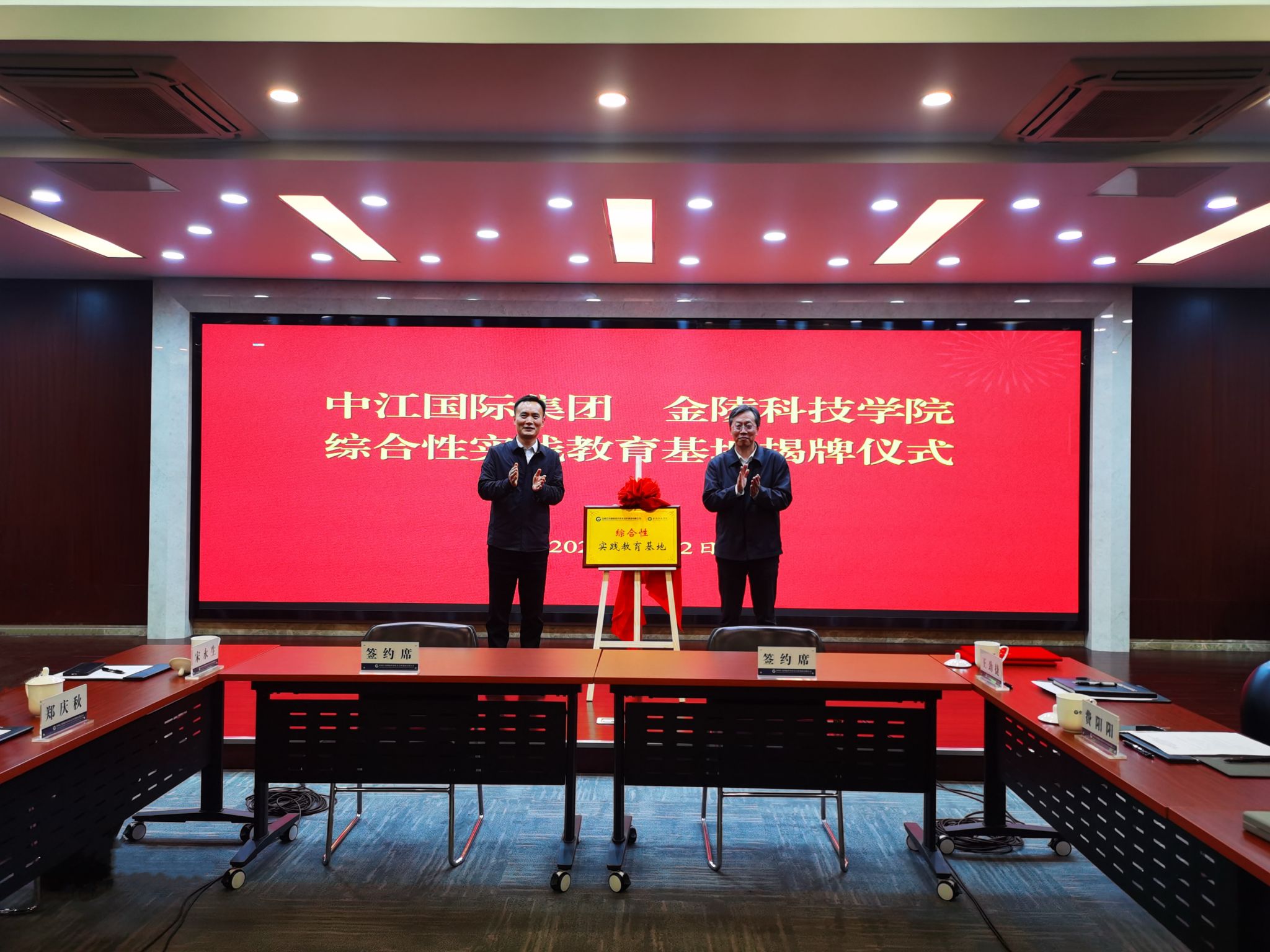 时代,,,,,,,,王延光与孙光能为“中国江苏国际经济手艺相助集团有限公司与看个球app官网综合性实践教育基地”揭牌,,,,,,,,刘志峰与董旭签署了“中国江苏国际经济手艺相助集团有限公司与看个球app官网综合性实践教育基地”协议。。。。。。。