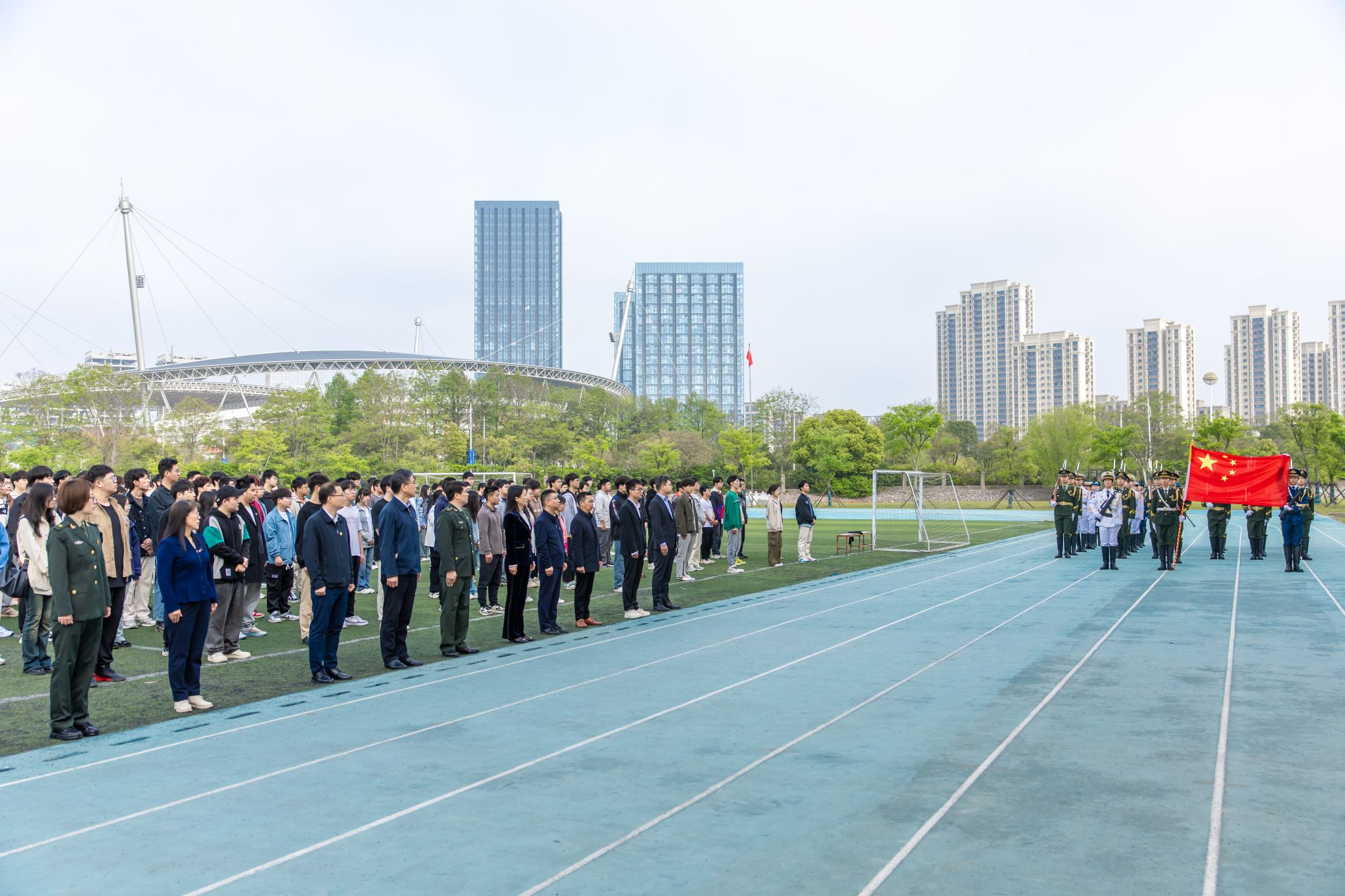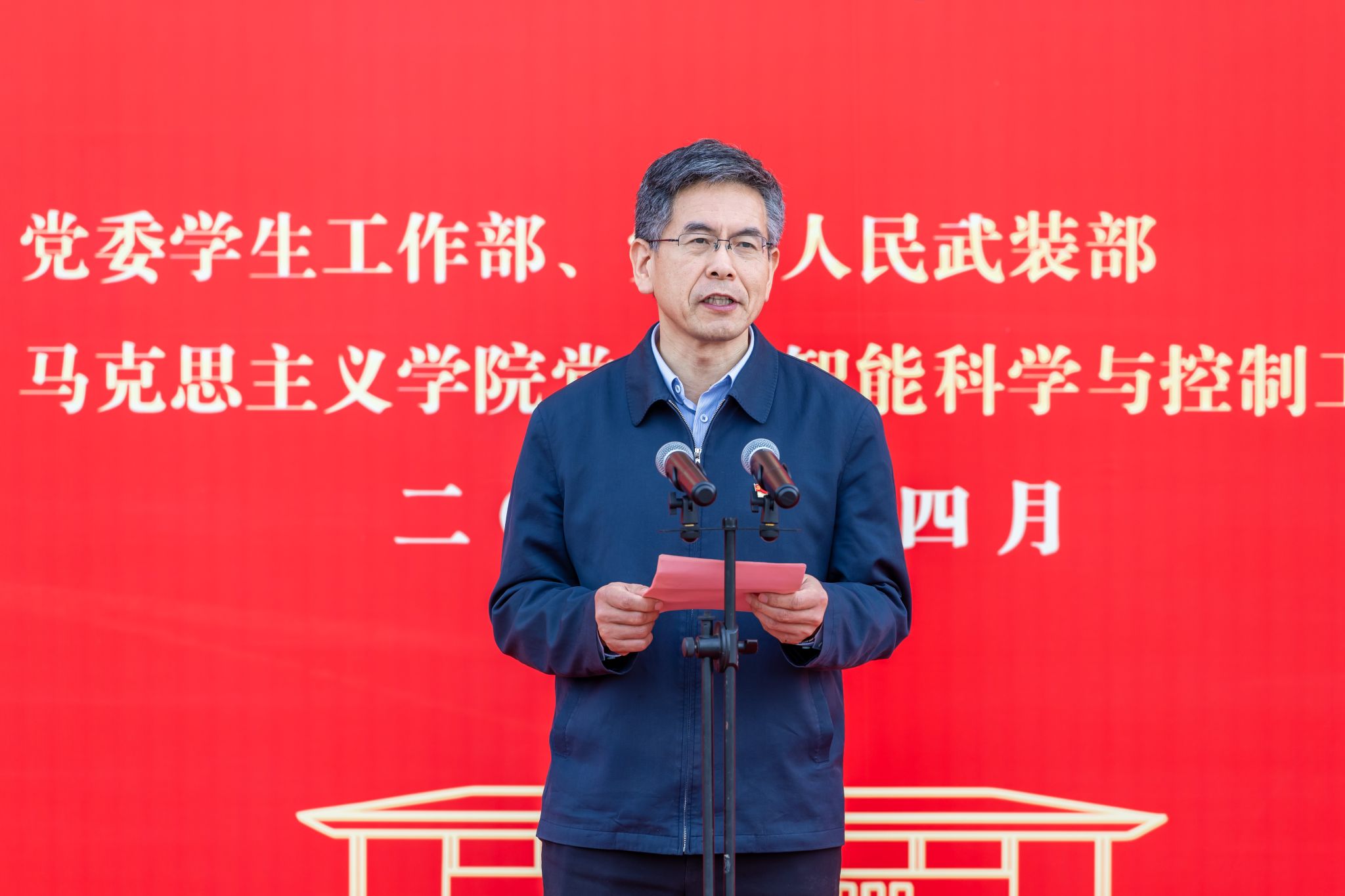 4月15日清早,,,,,,,智能科学与控制工程学院、马克思主义学院的500余名师生齐聚江宁校区北区田径场举行升国旗仪式,,,,,,,共上“国旗下的思政课”。。。。。。。校党委书记刘志远作国旗下的讲话,,,,,,,智能科学与控制工程学院和马克思主义学院相关认真人、西席代表、全体学生加入仪式。。。。。。。