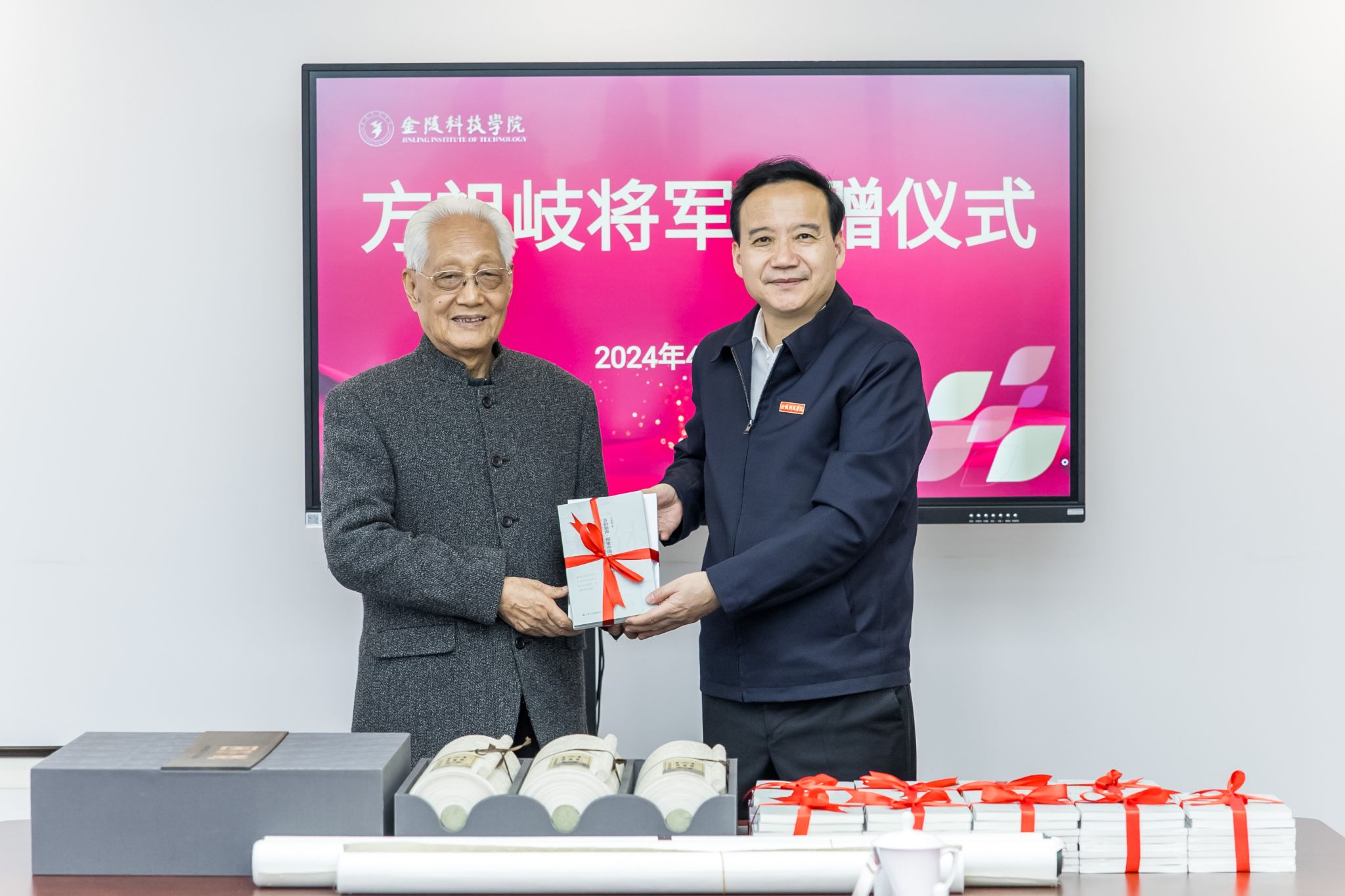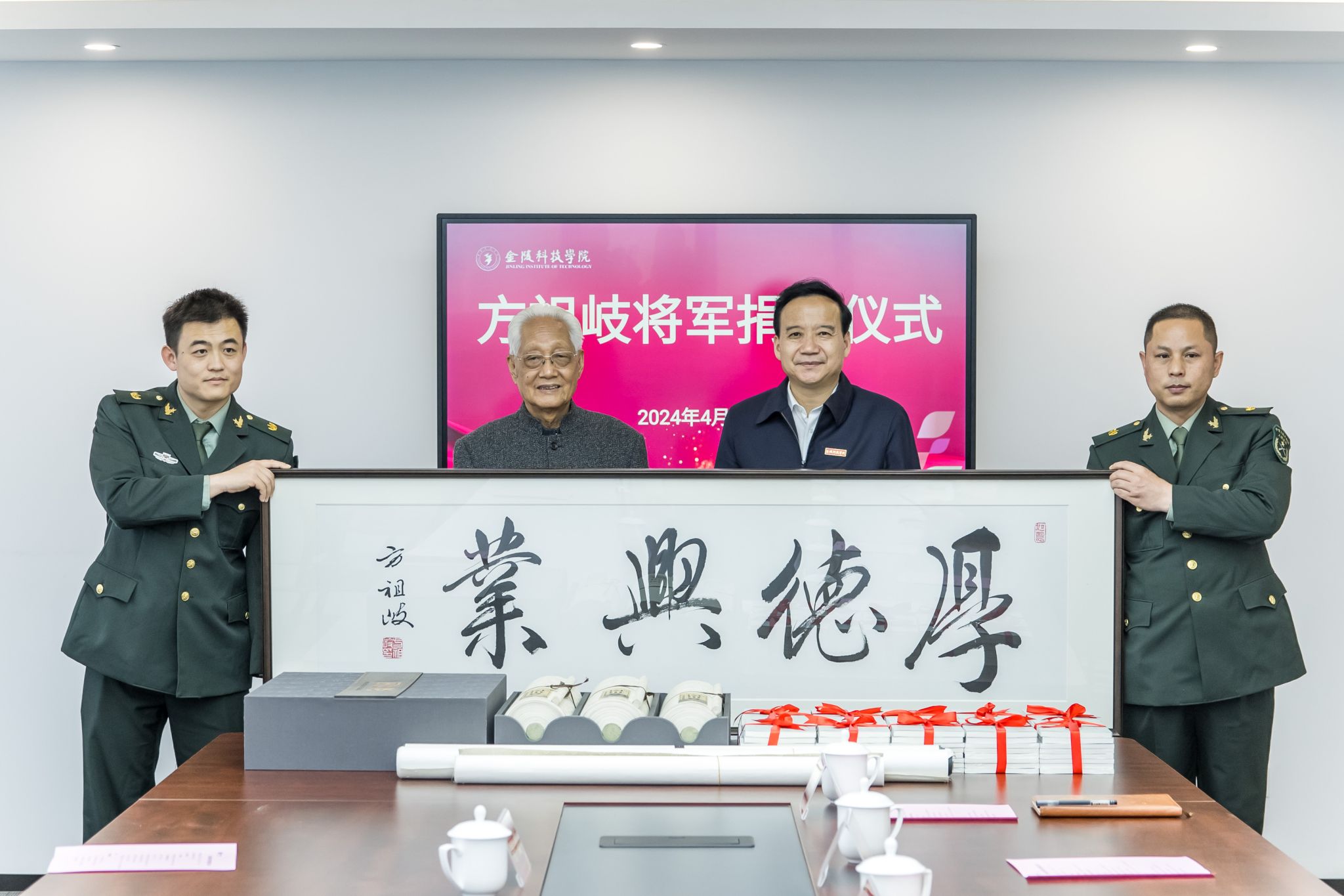 刘永彪代表学校接受方祖岐将军捐赠的小我私家著作及字画作品,,,,,对学校能够有幸珍藏方将军珍贵的作品体现真挚谢谢。。。。。。。他体现,,,,,方将军一生立德、立功、立言,,,,,慷慨捐赠的作品和书籍不但提升了校园文化内在,,,,,也是对学校新时代立德树人与人才作育事情的重大支持。。。。。。。学校将充分验展捐赠作品的艺术价值、育人价值和社会价值,,,,,作育更多可堪大用、能担重任的栋梁之才,,,,,为奋力推进中国式现代化南京新实践、为建设社会主义现代化强国作出新的更大孝顺。。。。。。。