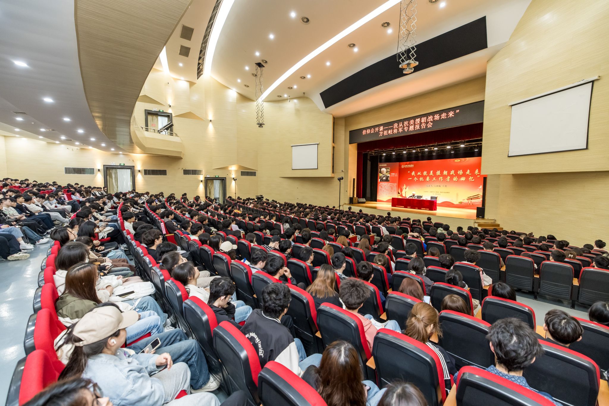 随后,,,,,方祖岐将军以《我从抗美援朝战场走来——一个神秘事情者的回忆》为题教学“信仰果真课”,,,,,刘志远、刘永彪和师生代表认真聆听了这场感感人心的思政课。。。。。。。方将军从抗美援朝的历史意义、奋战历程和亲自履历三个方面睁开交流,,,,,向导师生们回溯了那段战火纷飞、激情燃烧的岁月。。。。。。。授课中,,,,,他几度哽咽,,,,,用自己坚定的信仰诠释了对党和国家的小儿之心,,,,,展现了一个共产党人的责任、追求和信心,,,,,以及中国武士忠诚正直、敢于继续,,,,,始终胸怀“国之大者”的深挚情怀。。。。。。。他希望宽巨匠生要学习革命先进忠于祖国、不怕牺牲的精神,,,,,挑起中国式现代化建设的重担,,,,,肩负起中华民族伟大再起的历史使命。。。。。。。先进们的高尚品质和家国情怀让现场师生肃然起敬,,,,,深受触动,,,,,报告厅内响起耐久不息的掌声。。。。。。。