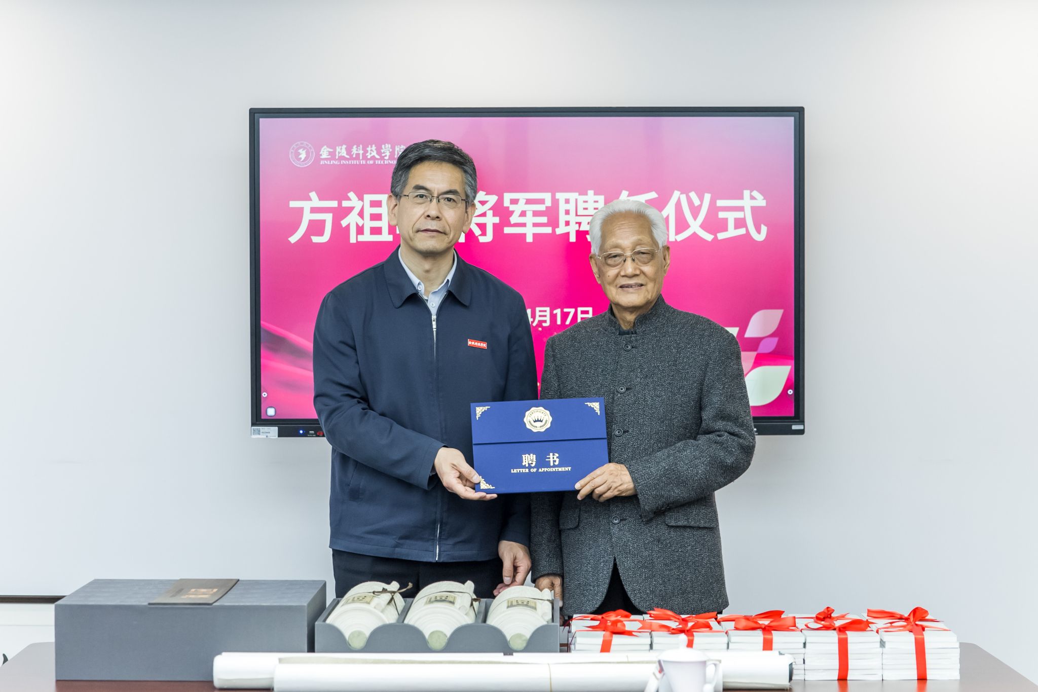 刘志远代表学校党委对方祖岐一行的到来体现真挚的接待,,,,,并向方将军揭晓学生思政导师聘书。。。。。。。他体现,,,,,方将军是我国国防事业生长的见证者和孝顺者,,,,,是受人敬仰的革命家和军事家,,,,,同时也是用“诗、书、画”作品阐释“军魂”的艺术家和善士。。。。。。。他指出,,,,,学校作为一所为南京而生、为南京而在、为南京而长的地方高校,,,,,始终坚持“为党育人,,,,,为国育才”的初心使命,,,,,高度重视国防教育事情,,,,,深化打造新时代国防教育顽强阵地,,,,,指导宽大金科师生砥砺强国之志,,,,,厚植家国情怀。。。。。。。他希望学校党员干部都要以方祖岐将军为楷模,,,,,坚守育人使命,,,,,当勤学校事业生长攻坚战中的排头兵。。。。。。。