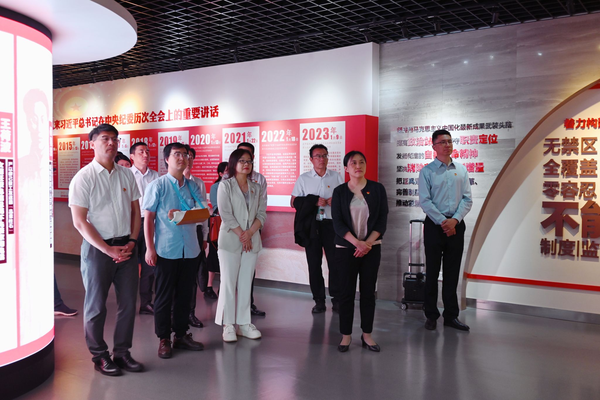 为深入学习贯彻习近平新时代中国特色社会主义头脑,,,,,切实把头脑和行动统一到党中央决媾和安排上来,,,,,扎实推进党纪学习教育,,,,,越发深刻熟悉增强党的纪律建设的主要性,,,,,以严正纪律推进党的自我革命,,,,,5月15日下昼,,,,,纪委办公室、党委组织部团结组织校纪委委员、二级党组织纪检委员、新提任干部、年轻干部、专职纪检干部等近70人赴王荷波纪念馆、南京条约史料摆设馆(南京静海寺纪念馆)开展现场教学。。。。。。党委常委、纪委书记王靖华出席,,,,,党委常委、组织部长张远凤,,,,,纪委副书记、纪委办公室主任周骏加入。。。。。。