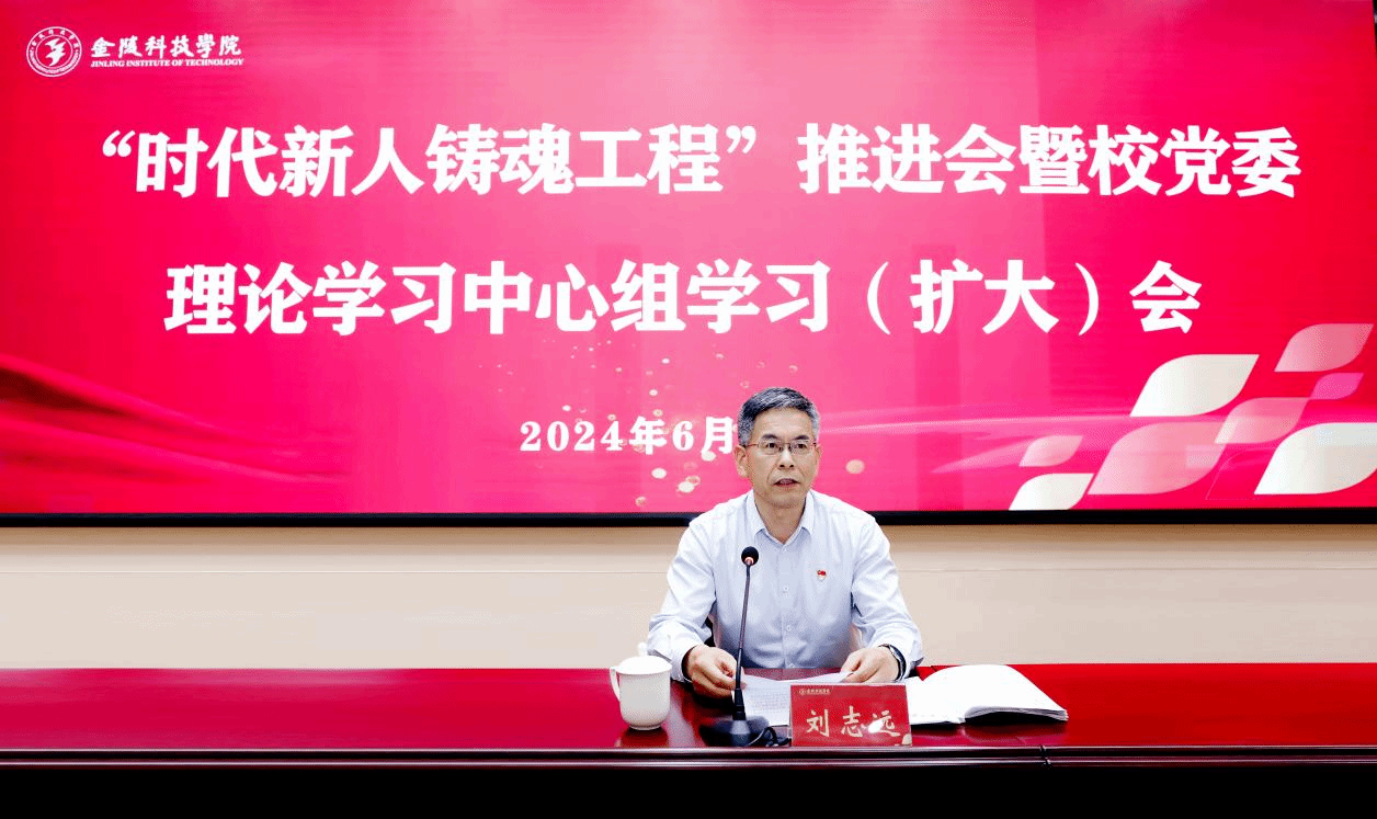 6月5日,,,,,我校召开“时代新人铸魂工程”推进会暨校党委理论学习中心组学习(扩大)会,,,,,约请中国教育学会学术委员会常务副主任委员、教育部政策规则司原司长邓传淮作专题向导报告。。。。。校党委书记刘志远主持聚会并讲话,,,,,校向导、校党委委员、校纪委委员,,,,,处级干部,,,,,马克思主义学院西席,,,,,向导员等加入聚会。。。。。