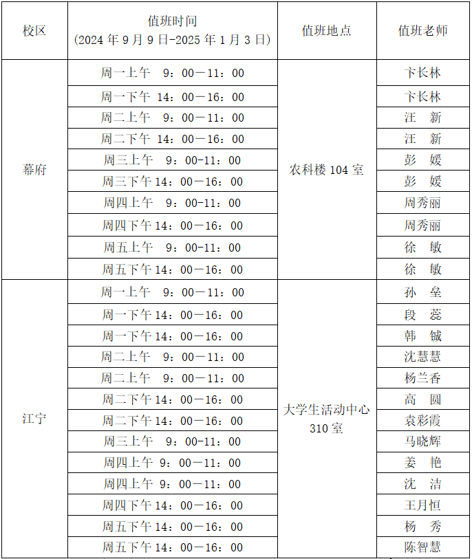 备注:大学生心理康健教育中心专职西席,,,,,,,周一至周五事情时间均可预约咨询。。。。。