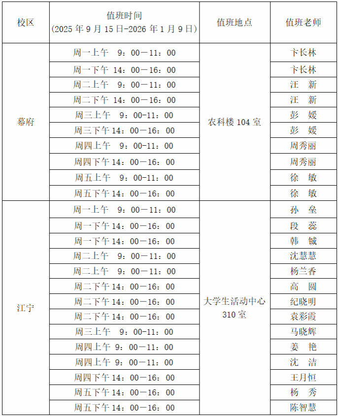 3.心理咨询值班安排(见下表)