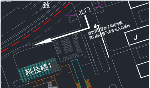 注重:北门收支车辆请从金陵北路东段通行(图一白色箭头收支偏向);;;;;;由金陵西路(工科楼东侧路段)前往科技楼车辆,,,,,,请从玉兰路绕行(图二白色箭头为绕行偏向);;;;;;所有进入科技楼的无邪车请从科技楼北侧路口进入(图三白色箭头为进入偏向)。。。。。。。。