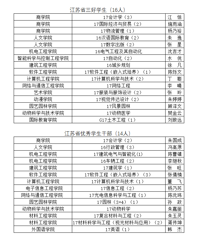 ƾ֤¡¶Ê¡½ÌÓýÌüÍÅʡί¹ØÓÚÆÀÑ¡2020Äê¶È½ËÕʡͨË׸ßУʡ¼¶ÈýÇÚѧÉú¡¢ÓÅÒìѧÉú¸É²¿ºÍÏȽø°àÕûÌåµÄ֪ͨ¡·£¨ËÕ½Ìѧ¡²2020¡³2ºÅ£©ÎļþµÄÒªÇ󣬣¬£¬£¬£¬£¬¾¸÷Ñ§ÔºÍÆ¼ö£¬£¬£¬£¬£¬£¬Ñ§ÉúÊÂÇéίԱ»áÆÀÑ¡£¡£¡£¡£¡£¬£¬£¬£¬£¬£¬Äâ¾öÒéÍÆ¼ö18¹ú¼Ê¾¼ÃÓëÉÌÒµ£¨1£©µÈ11¸ö°à¼¶ÎªÊ¡¼¶ÏȽø°àÕûÌ壬£¬£¬£¬£¬£¬½ÌñµÈ30ÃûѧÉúΪʡÈýÇÚѧÉúºÍÓÅÒìѧÉú¸É²¿£¬£¬£¬£¬£¬£¬ÏÖ½«Ãûµ¥¹«Ê¾ÈçÏ¡£¡£¡£¡£¡£