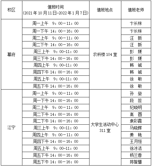 3.心理咨询值班安排(见下表)