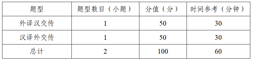 口译试卷满分为100分,,,,,,,时间为60分钟,,,,,,,共2种题型2道题,,,,,,,所有为主观题。。。。。。。。