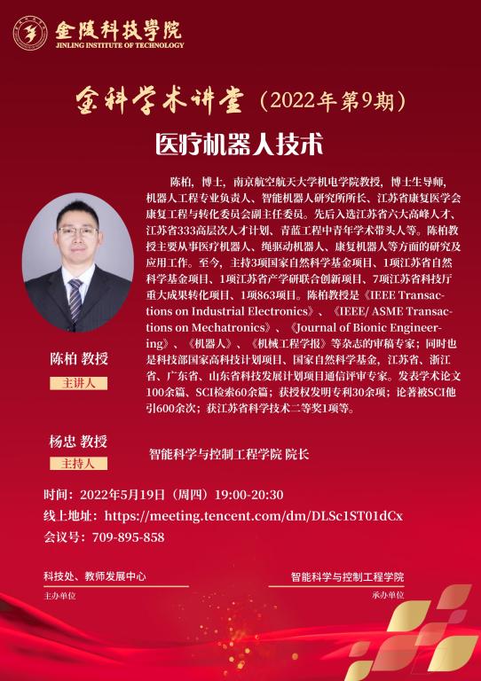 关于举行线上“金科学术课堂—医疗机械人手艺”学术报告的通知