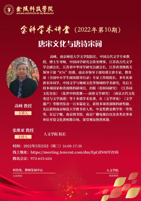 关于举行线上“金科学术课堂——唐宋文化与唐宋诗词“学术报告的通知