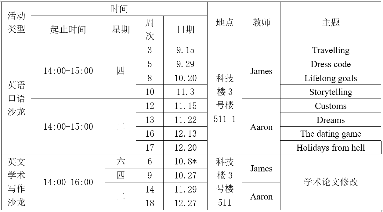 为切实提高我校西席英语口语与英文学术写作能力,,,,,,,,增强我校西席国际来往能力,,,,,,,,本学期国际相助与交流处继续开展西席英语口语与英文学术写作能力提升系列运动。。。。。。详细安排如下: