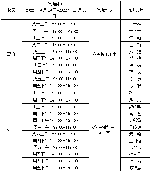 3.心理咨询值班安排(见下表)